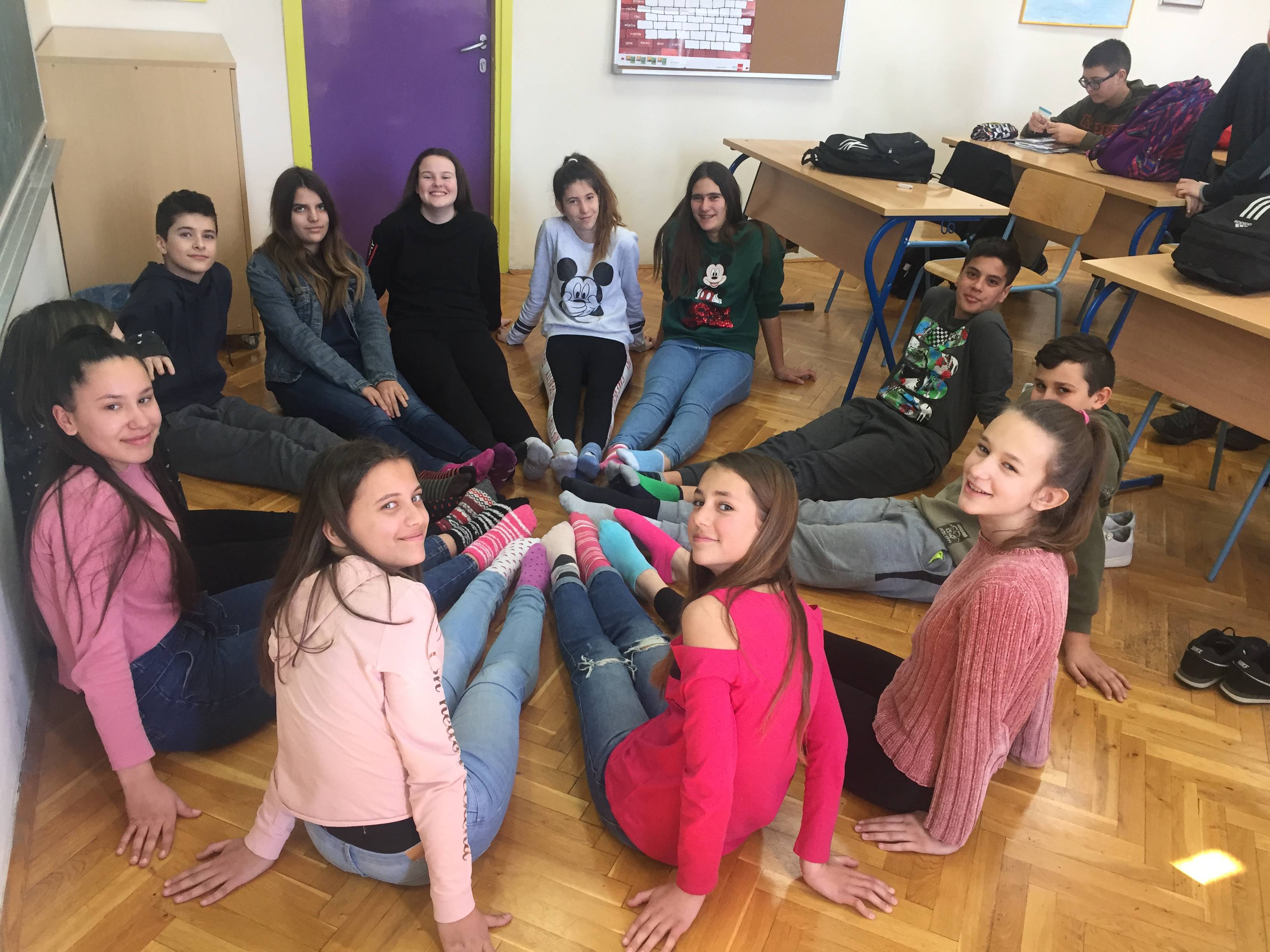 Učenici 7. b i 7. c razreda obuli su različite čarape kako bi na simboličan način iskazali poštivanje prema osobama s Downovim sindromom.