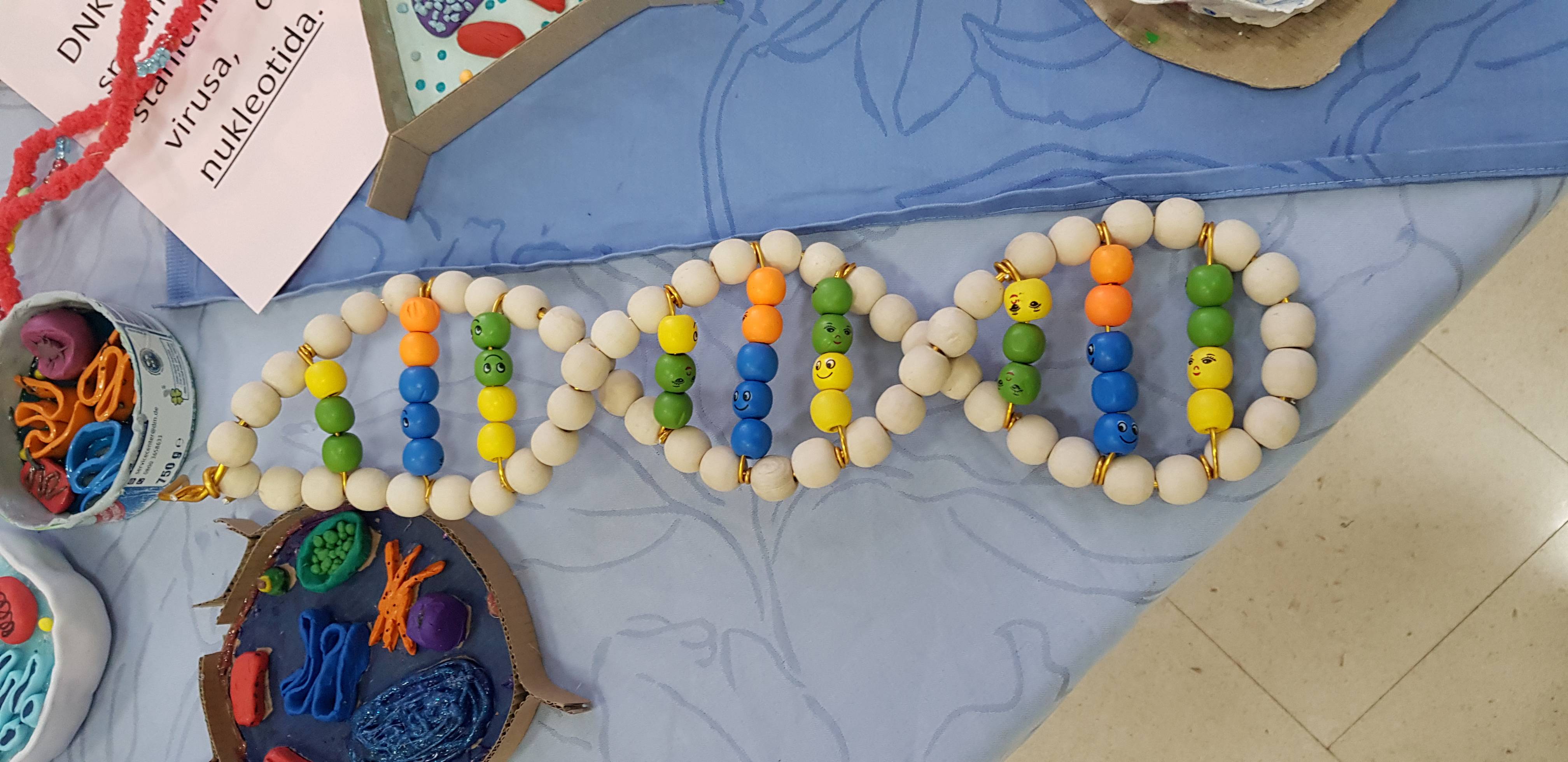 U školskom atriju postavljena je zanimljiva izložba za koju su zaslužni učenici sedmih i osmih razreda na čelu s nastavnicom Biologije Silvanom Mijić. Razgledajući postav, naučili smo da je deoksiribonukleinska kiselina (DNK) nukleinska kiselina u obliku dvostruke spiralne zavojnice koja sadrži genetske upute za specifični biološki razvoj staničnih oblika života i većine virusa, a stanica je osnovna strukturna i funkcionalna jedinica svih poznatih organizama.