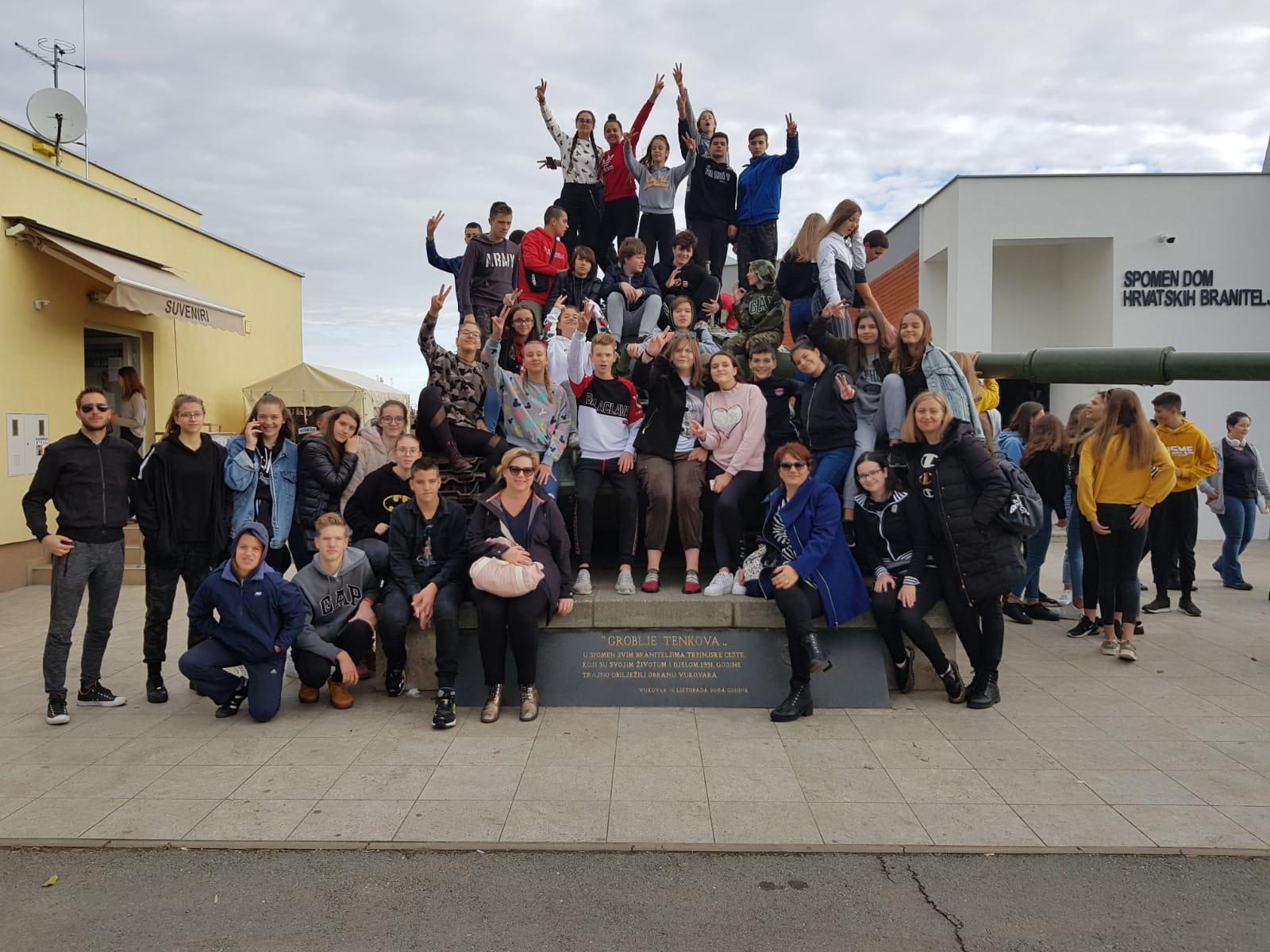 Prvo jutro naše terenske nastave u Vukovaru započelo je dvama zanimljivim predavanjima o Domovinskom ratu i Bitki za Vukovar. Profesor koji nam je držao predavanje pohvalio je našu aktivnost i zavidno znanje o Domovinskom ratu. Nakon predavanja obišli smo izložbene postave Memorijalnog centra, a vodiči su nam bili bivši vukovarski zapovjednici koji su s nama podijelili svoje ratno iskustvo te su nam pokazali kako se pravilno rukuje minsko-eksplozivnim sredstvima. Poslije predavanja fotografirali smo se pokraj vojnih tenkova, brodova i zrakoplova nakon čega smo se okrijepili ručkom i spremili za razgledavanje središta grada.