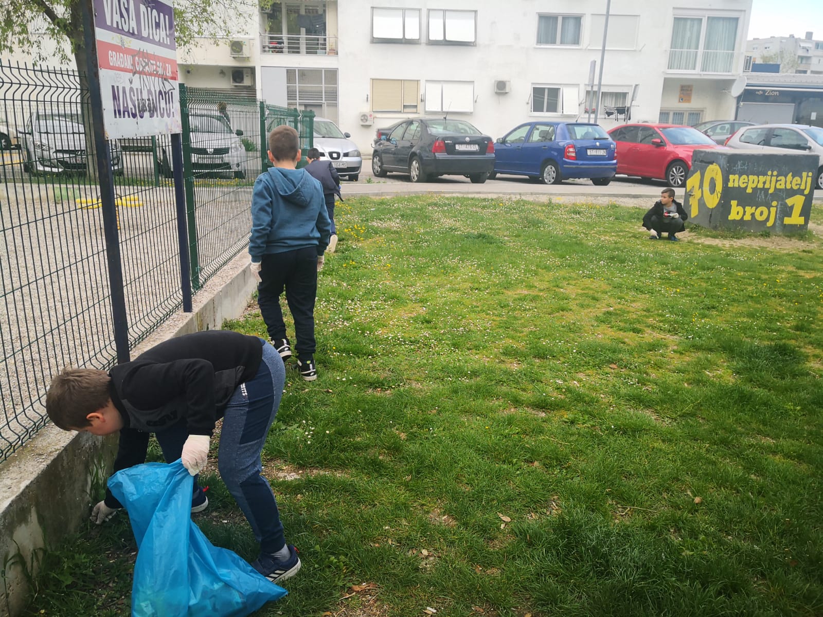 Povodom Dana planeta Zemlje, učiteljica Zdravka povela je svoj 2. d razred ''u akciju'', a šestašice Naomi i Marijeta čistile su školski okoliš.
