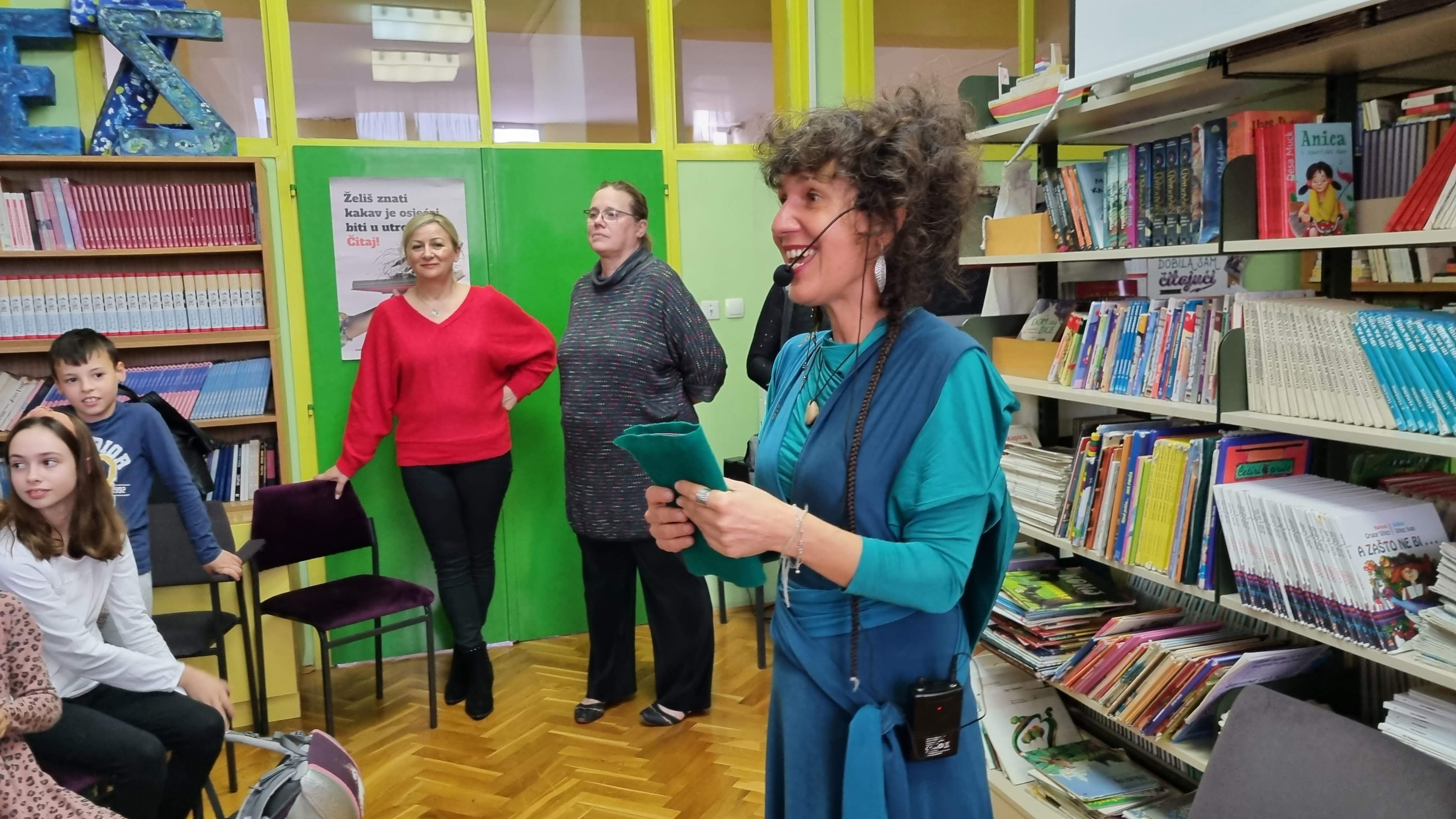 U utorak i srijedu ugostili smo posebnu gošću, zanimljivu ženu neobičih zanimanja – Margaretu Peršić. Ona je ilustratorica, lutkarica, slikarica te iznimno vješta pripovjedačica bajki. Održala je dvije radionice u kojima je našim trećašima pričala bajke na poseban način, pokazavši izuzetnu sposobnost interakcije s publikom u kojoj je našla i glumce za svoje likove prinčeva, princeza, sluga, divova... Svi smo uživali, i nadamo se ponovnom susretu! Hvala Školskoj knjizi koja nam je omogućila ove radionice. U nastavku je intervju s umjetnicom Margaretom Peršić.