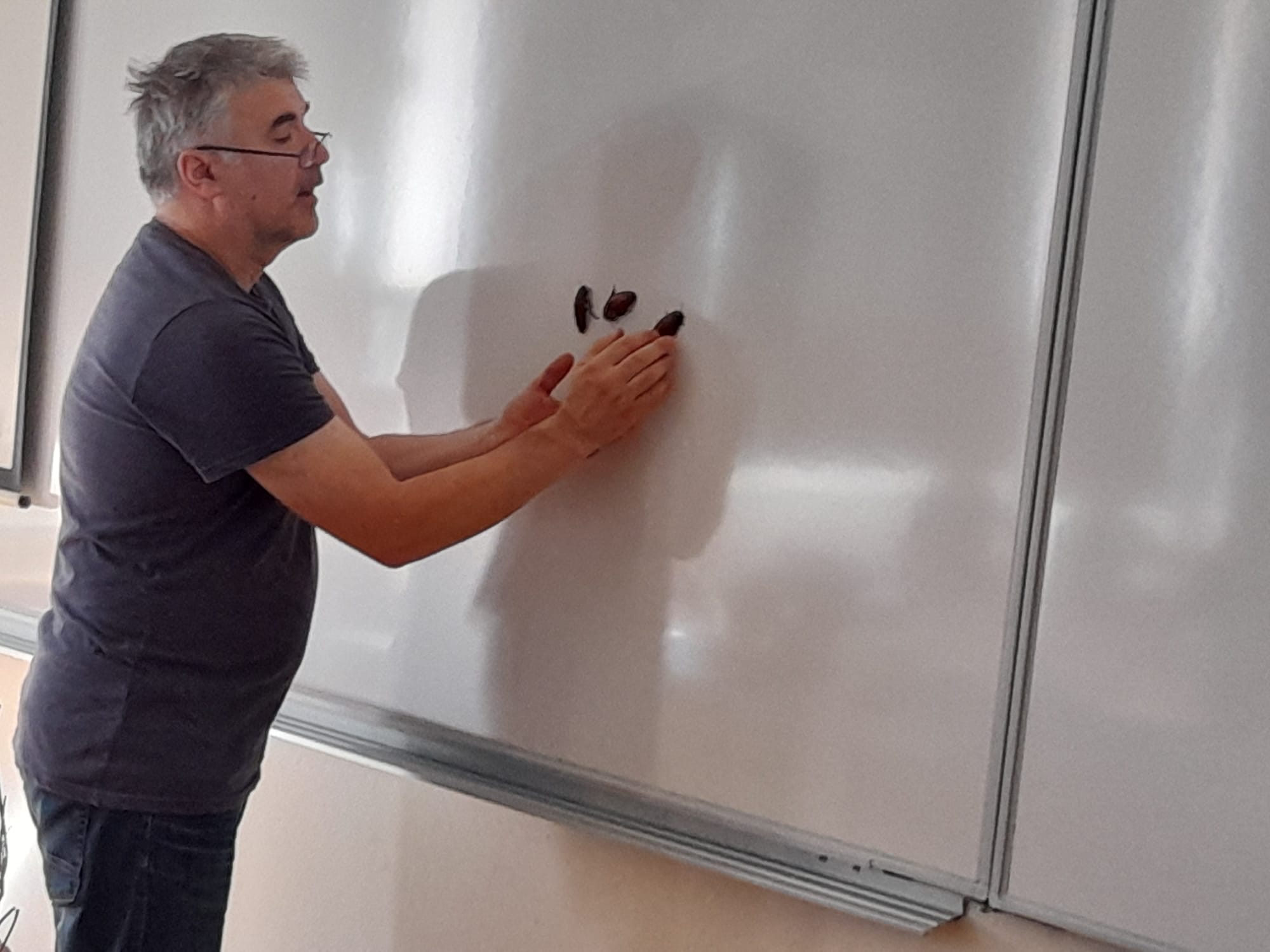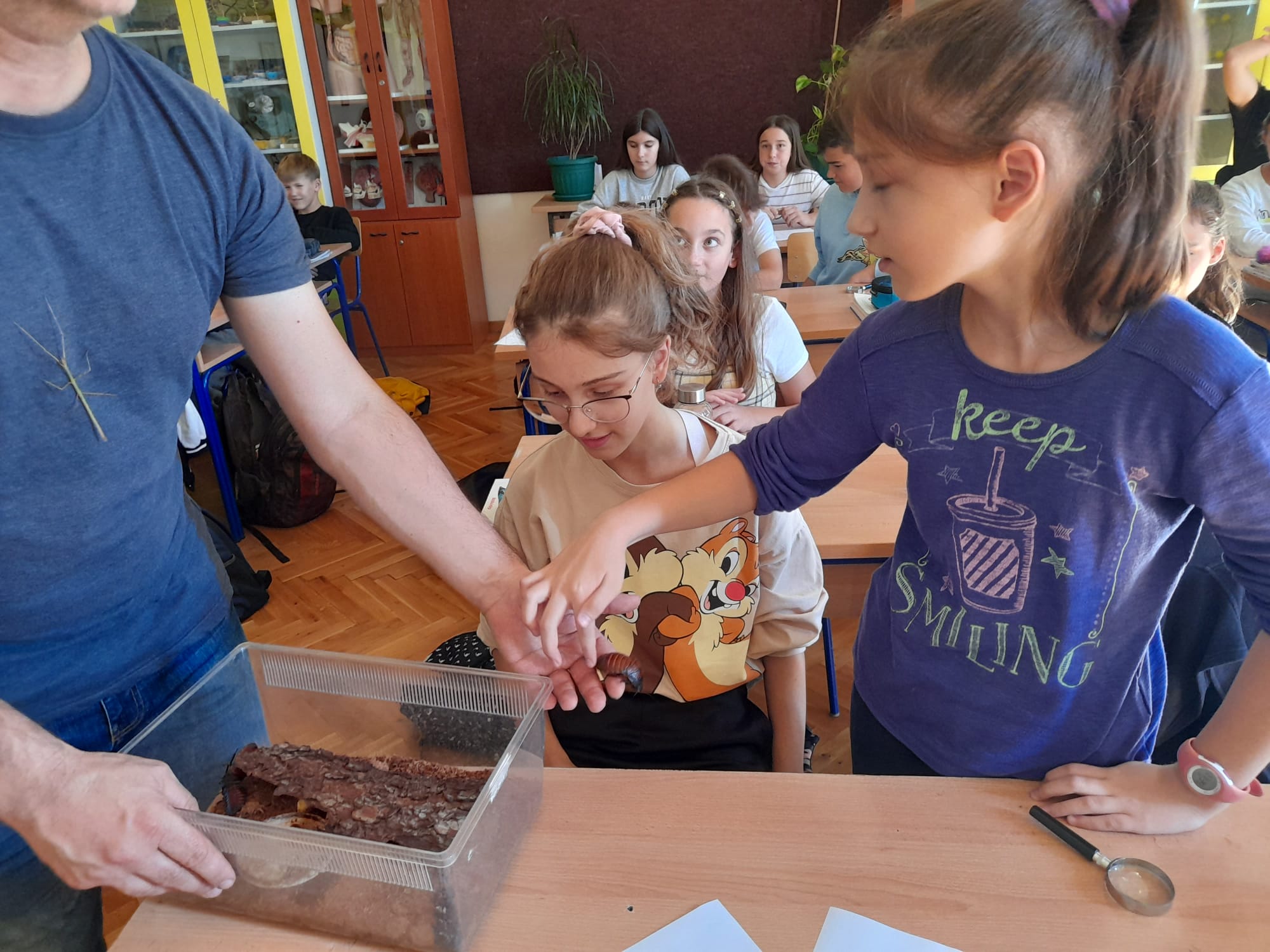 Svi smo bili uzbuđeni i pomalo nervozni jer nismo znali što nas očekuje. U učionici je vladao nemir kada je predstavnik ušao s profesoricom. Donio je razne kutije sa živim i prepariranim životinjama, a imao je i saće. Nakon što smo se smirili počelo je predavanje.
