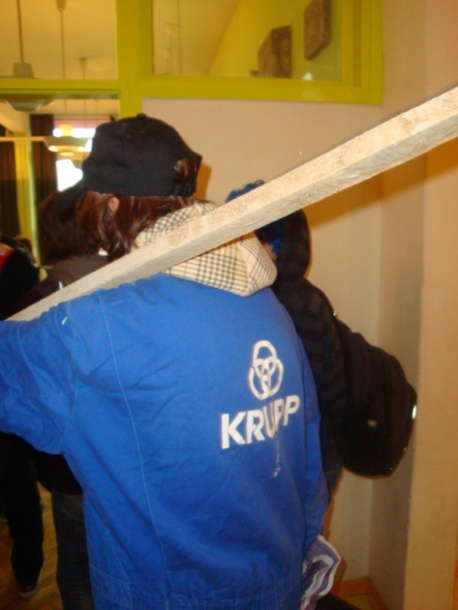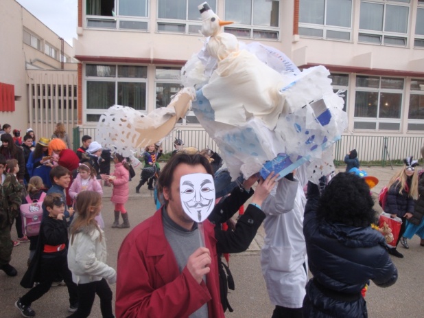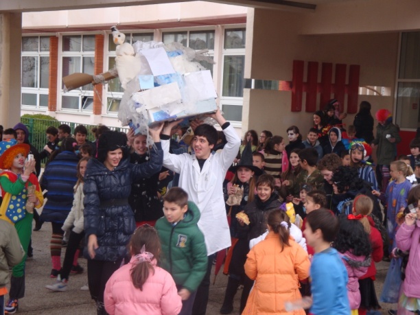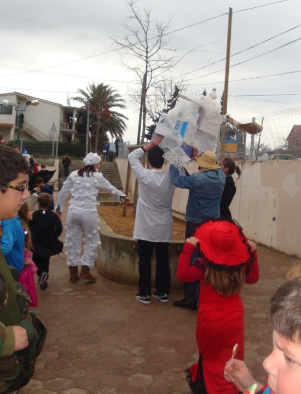 I onda je bijo odmor pa smo mi dica izašli vani. Nismo išli po marende jer su nan mala srca lupala kad smo vidili nositelje projekta Krnje: Antonija, Andriju, Ivanu i Teu kako Krnju iznose vanka visoko visoko. Oni ga nose a ono pada snig po njima. Čudesa!