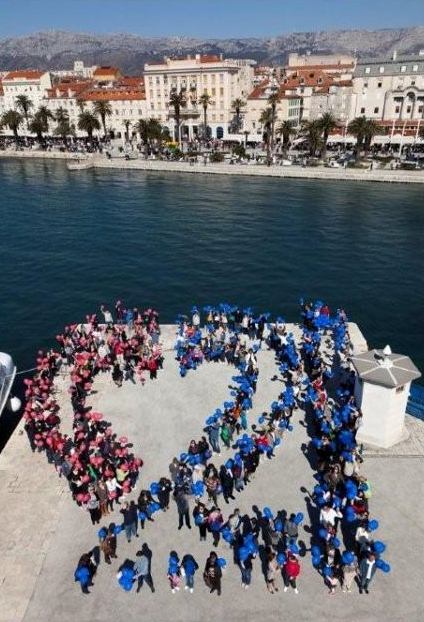 Na splitskom gatu nastala je milenijska fotografija Šime Strikomana na kojoj su djeca sa Down sindromom, njihovi roditelji, obitelji, prijatelji... Predstavlja broj 21, crveni baloni nadopunjuju broj 2 do srca jer takva djeca imaju „grešku“ na 21. kromosomu. Cilj je ukloniti predrasude o bolesnima i različitima, probuditi savjest i skrenuti pozornost na dio dječje populacije koja zaslužuje našu punu pažnju i ljubav.