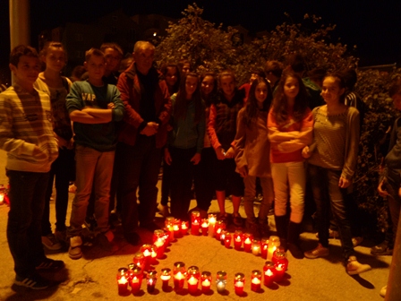 I danas, 18. studenog 2012. godine, kao i prethodnih godina, učenici naše škole išli su u Vukovarsku ulicu zapliti svijeće u čast žrtava grada Vukovara. Svijeće smo zaplili uzduž ulice u raznim oblicima i simbolima. Također, pomolili smo se za svih. Nastavit ćemo tradiciju i idućih godina, u čast onima koji su zaslužni što smo mi ovdje.
