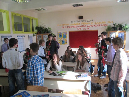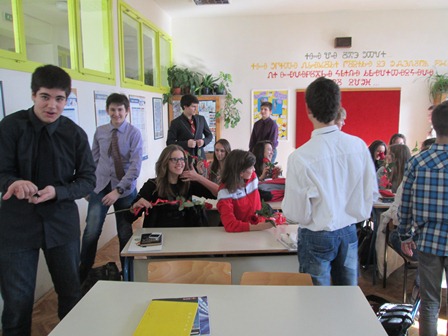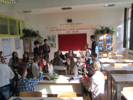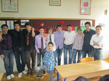 Dečki su naručili ruže i desetak minuta nakon zvona početka nastave, jedan po jedan ušetali su u učionu. Cure su ostale PAF! Svaka dama je imala svog kavalira koji je stao pokraj nje. Tišina. Tišina je trajala dugo, zrak je bio natopljen upitnicima, sunce je obasjalo čitavu učionici. Uslijedio je naklon i spuštanje na jedno koljeno i ruže su se predale. Osmjesi. E, te osmjehe je vrijedilo vidjeti... Zagrljaji, suzice u očima...