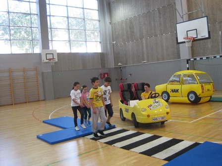 Učenici 2.a i 2.b razreda pozorno su pratili zanimljivo izlaganje naših predavača o tome kako na siguran način prijeći ulicu i o važnosti pravilnog vezivanja pojasom prilikom vožnje. Učenici su zatim imali priliku demonstrirati naučeno uz pomoć vesele zebrice i lutka Hakija. Predavanje je trajalo 2 školska sata koja su brzo proletjela zahvaljujući zanimljivom izlaganju naših predavača.