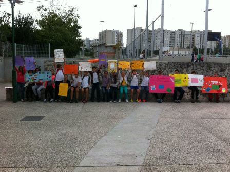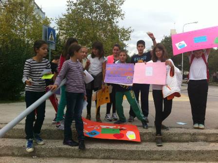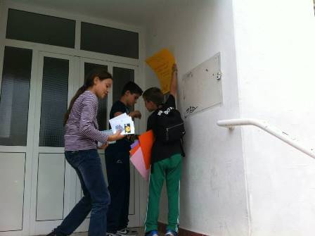 Zatim smo opet preko škole krenuli na Neslanovac, dječake smo ispratili na tjelesni, a nakon naše šetnje nije im bilo potrebno zagrijavanje. Nakon kruga po Neslanovcu došli smo do Tommy-a. Tu nisu smjeli staviti plakat (zabranjeno) ali su zato stali ispred trgovine i dijelili letke.