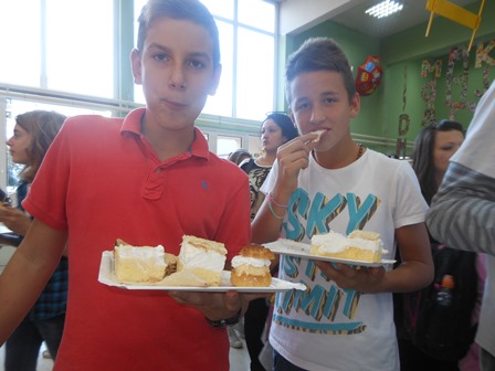 Atrij je odzvanjao smijehom, uzvicima, dovikivanjima, pjevalo se i plesalo ispred škole, izmjenjivali su se komentari koji je kolač bolji, čak su se i neki naši bivši učenici pojavili kako bi pomogli Luki.