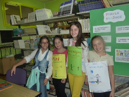 Najvažnije je bilo pokazati djeci kako postupati sa posuđenim knjigama, što su naučili kroz mali igrokaz koji su im pripremile mlade knjižničarke iz 5.a razreda Lucija, Petra, Ivana i Anamarija.