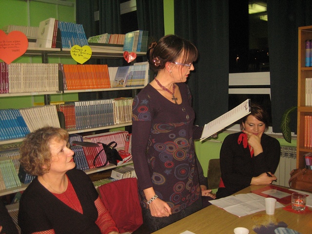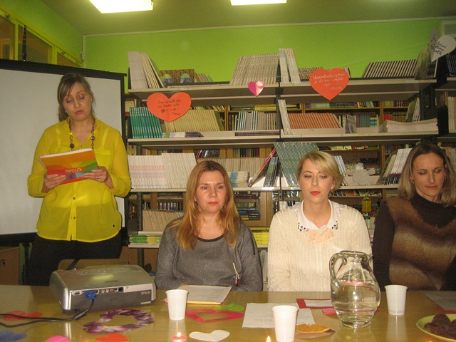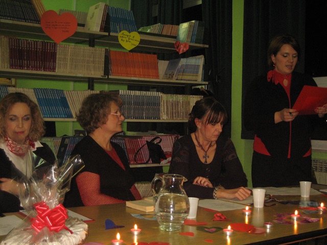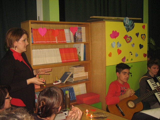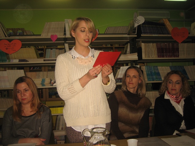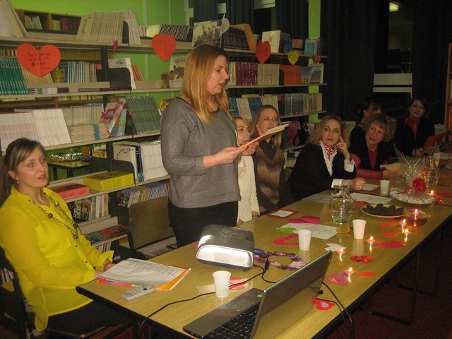 Lavinu ljubavi pokrenula je knjižničarka Ana Bonači stihovima svetog Pavla i njegovom Poslanicom Korinćanima. Svjećice i šarena srdašca koje je s učenicima pripremila nastavnica Blaga Miše učinila su našu ugodnu knjižnicu još prikladnijom za ovu simboličnu proslavu. Nastavnica Šitić svojom je temperamentnom interpretacijom Victora Hugoa i Francesca Petrarce zadivila sve prisutne. Posebnu notu otmjenosti i nježnosti unijela je u Byronove stihove nastavnica Kujundžić svojom engleskom pjesmom o ljubavi. A onda se knjižnicom zaorio zvuk harmonike i Kalinke. Marko Antonio Maršić (8.d) najavio je ruske stihove koje su interpretirale nastavnica Silvana Jukić i Antonela Berić. Nastavničku postavu obogatila je i školska tajnica Vanda Petrović koja je emotivno izgovarala riječi slovenskog pjesnika Prešerna. Slavensku nostalgičnost ublažila je njemačkim stihovima R.M.Rilkea učiteljica Ivana Matulović Marinović. Svakako vrijedi izdvojiti glas učenice Korine Valente (8.c) koja je otpjevala španjolsku pjesmu Verde que te quiero verde i time najavila španjolske stihove koje je strastveno izgovarala nastavnica Haidi Mimica Tudor. Za kraj uhu najjasnija i, naravno, najbliža ljubav – ona hrvatska koju je izgovarala nastavnica Iva Bečić.