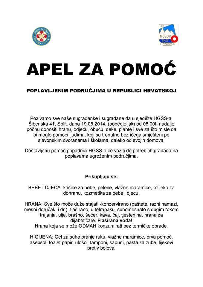 HGSS se pridružuje apelu Hrvatskog Crvenog križa za pomoć poplavljenim područjima u Republici Hrvatskoj.:
