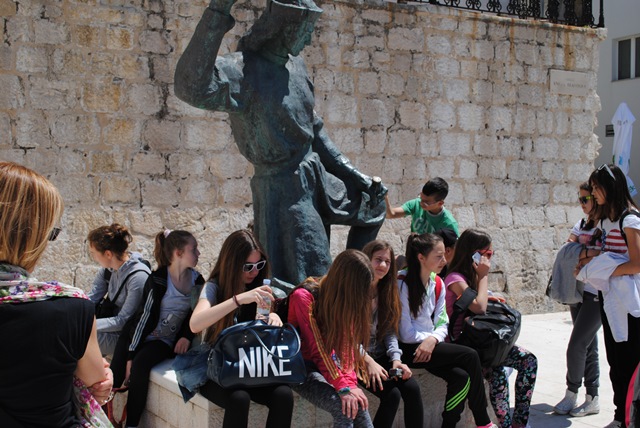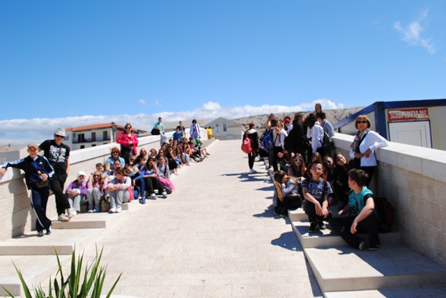 Malo lijevo, desno, kula jedna, spomenik Jurju Dalmatincu i polazak za Zadar. U autobusu 6. c i 6. d nastavljaju s pjesmom. Za mikrofonom su se redali: Mirjam, Paula, Angela, Branko, Ivan, Domagoj, Dora, Sara, Anđela... Atmosfera na vrhuncu!