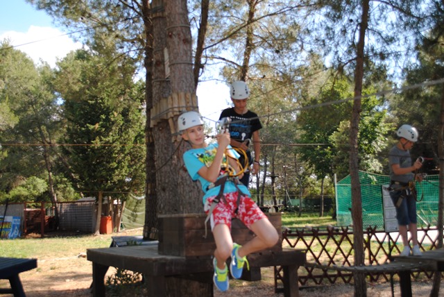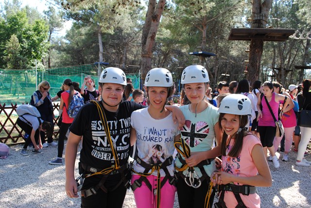 I eto ga... U lijepoj borovoj šumi dočekale su nas raznorazne staze i stazice za zabavu i buđenje Tarazanovog duha u nama. Nakon detaljnih priprema i uputa: izazov kojem nitko nije mogao odoljeti. S kacigama na glavama, čvrsto vezani užadima, naši su šestaši iskušavali svoju ravnotežu i sposobnosti. Bilo ih je posvuda, kao vjeverice su se razbježali stablima i bilo je pravo mučenje gladati ih iz žablje perpektive. Svi su se uistinu trudili zabaviti i pobijediti strah. I svaka im čast na tome!