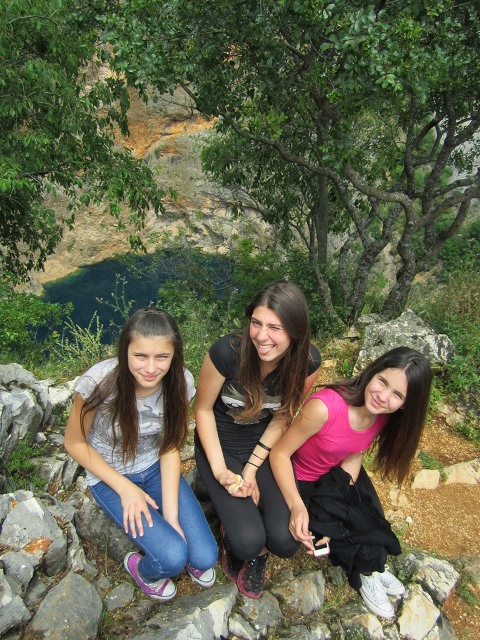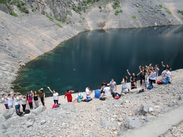 Zatim su se spustili u grad Imotski, na njegov trg, gdje su se ponovno odmorili i istraživali grad. Poslije Imotskog nastavili su prema Crvenom jezeru. Slikavali su se i pokušavali ubaciti kamenje u jezero što ipak nije bilo nemoguće. Nisu se dugo zadržali već su krenuli prema malenim jezerima, Dva oka i odmarali se i igrali na livadi u blizini.
