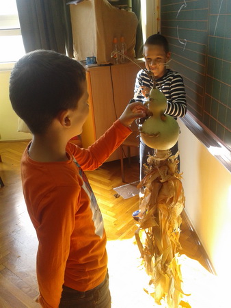 I eto krenuli smo u projekt promatrajući jesen, njene boje, parkove, vrtove, ljude... Ono što smo vidjeli van školskih klupa prenijeli smo i na papir, izradili Jesenka (malog i velikog), pjevali o jeseni.........