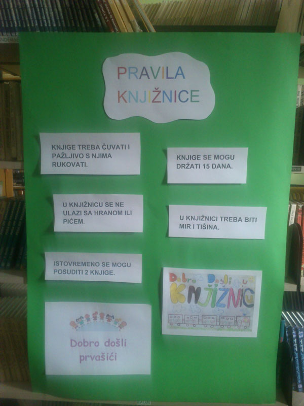 Mlade knjižničarke, učenice 5.a razreda, izvele su igrokaz „Od korice do police“ te uputile učenike o pravilima ponašanja u knjižnici.