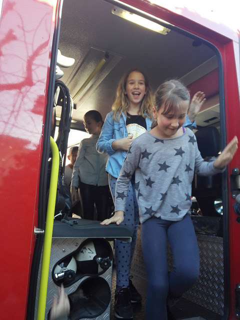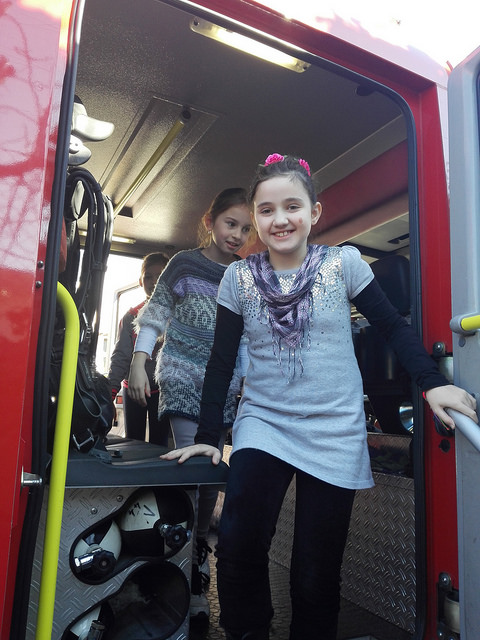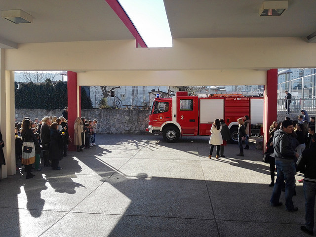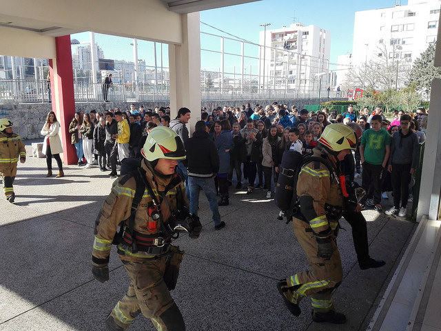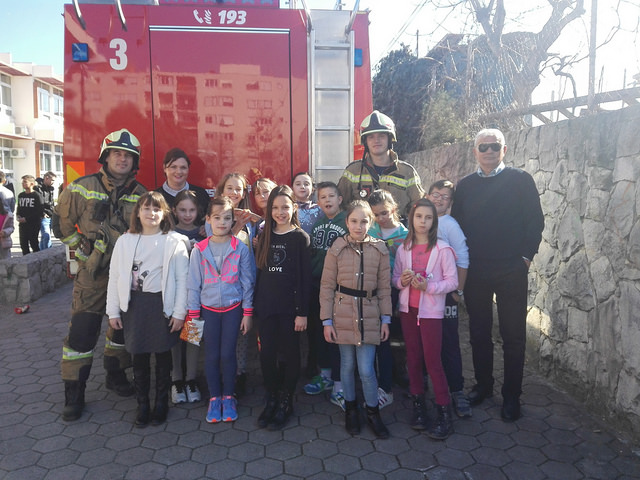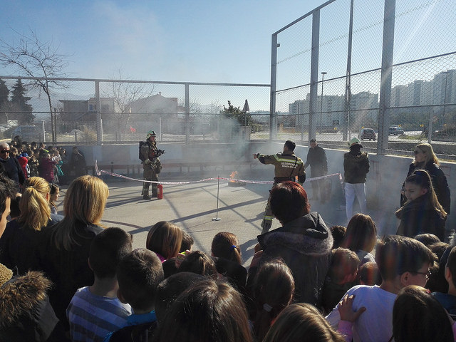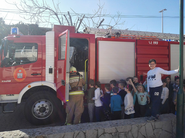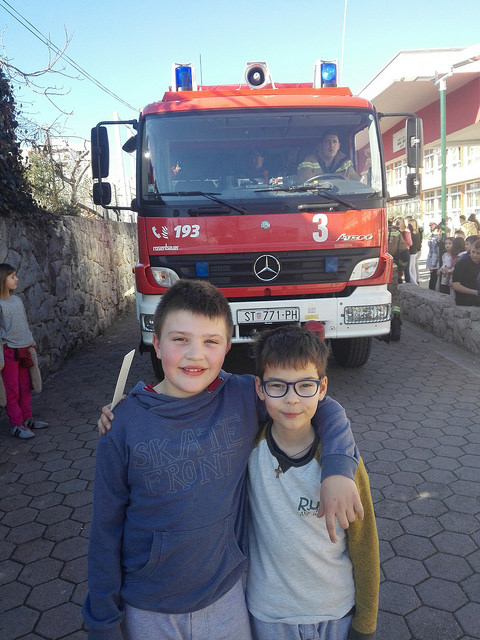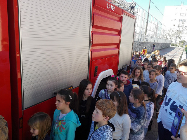 Na zvuk sirene svi učenici i djelatnici škole žurnim koracima napustili su školske prostorije. Nestrpljivo smo ispred škole iščekivali dolazak vatrogasnog vozila. Vatrogasci iz Javne vatrogasne postrojbe Grada Splita pokazali su kako reagirati u slučaju požara te kako rukovati aparatom za gašenjem požara. Najzanimljivi dio nam je bio ulazak i razgledavanje unutrašnjeg dijela vatrogasnog vozila.