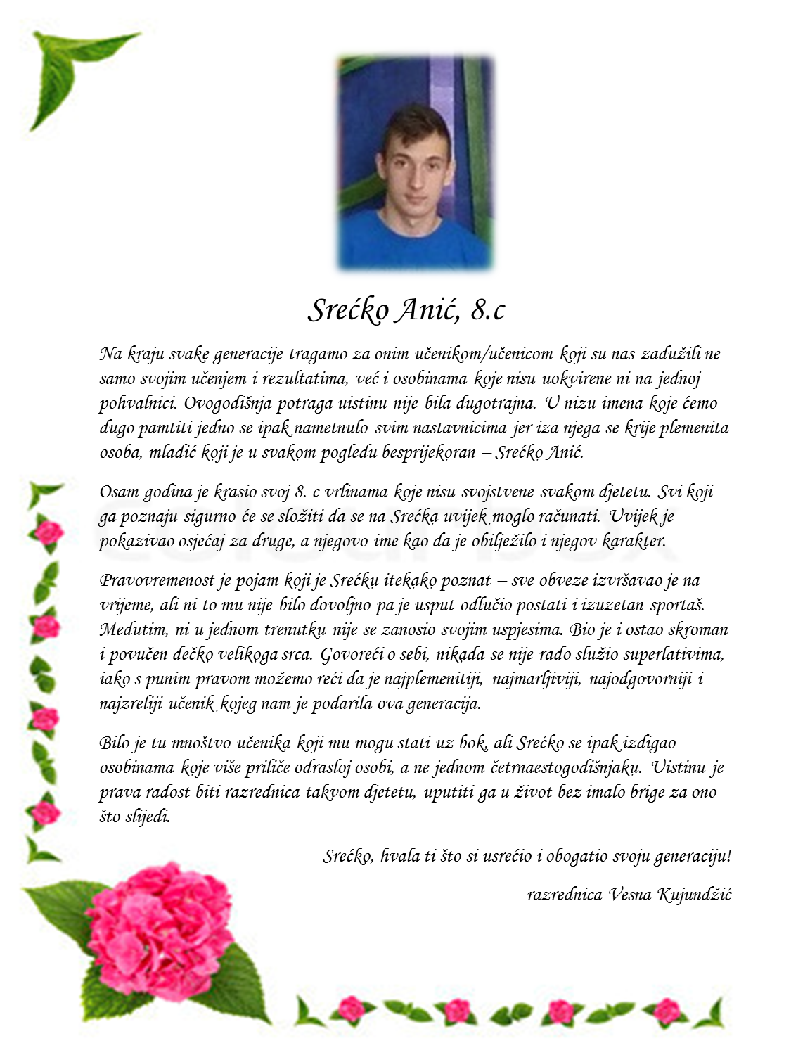 Karla Ančić, Srećko Anić, Jakov Basić, Kristina Bilokapić, Ana Bosančić, Petra Božinović, Nikolina Bukarica, Martin Čelar, Korlado Elač, Ena Franić, Gabrijela Glavan, Borna Jukić, Ivana Juras, Ivan Karaman, Mila Krmek, Toni Kuničić, Miroslav Lovrinčević, Marko Mrđen, Lucija Mudrinić, Frane Podrug, Nikola Prosenica, Sara Serdarević, Marko Spain, Željana Varvodić, Josipa Vlaić, Duje Vrvilo, Antonio Žarković, razrednica Vesna Kujundžić