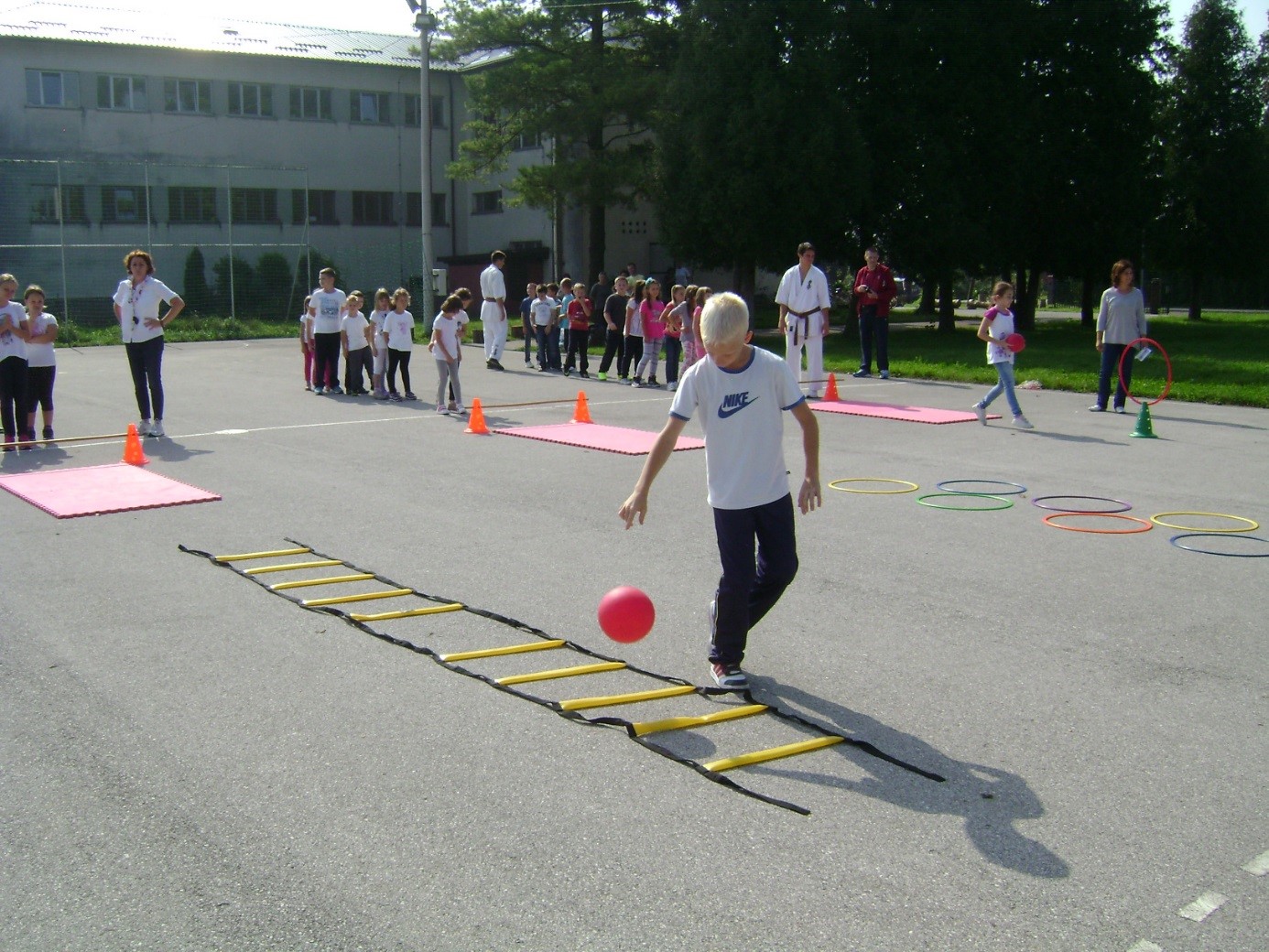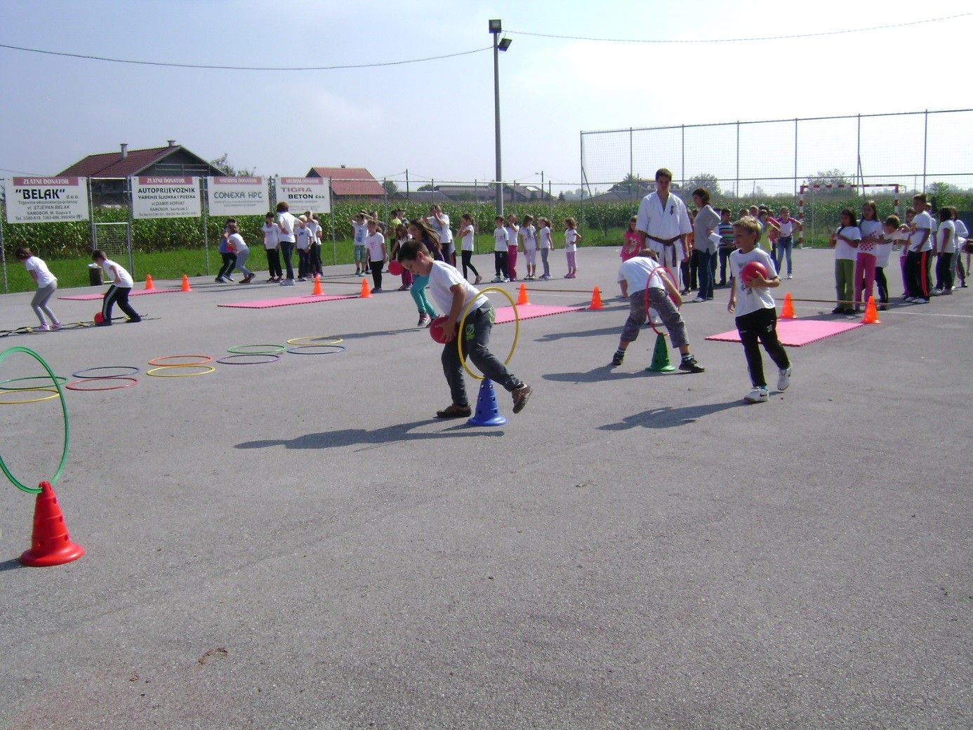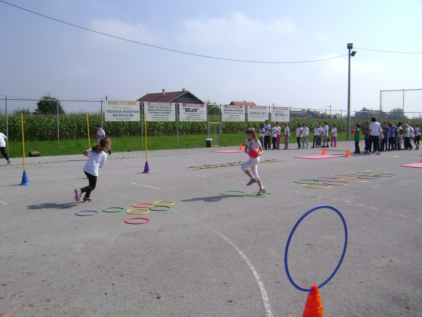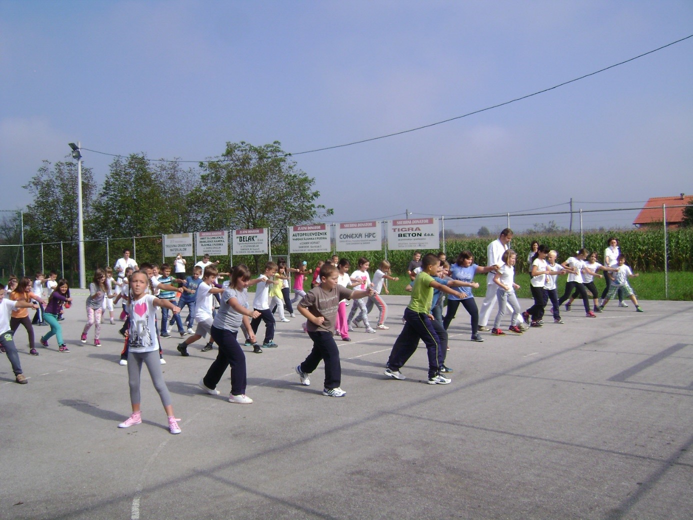 Obukli smo sportsku opremu i krenuli na školsko igralište. Nakon kraćeg zajedničkog razgibavanja u društvu članova KK Fortis, uslijedili su zahtjevniji sportski zadaci.