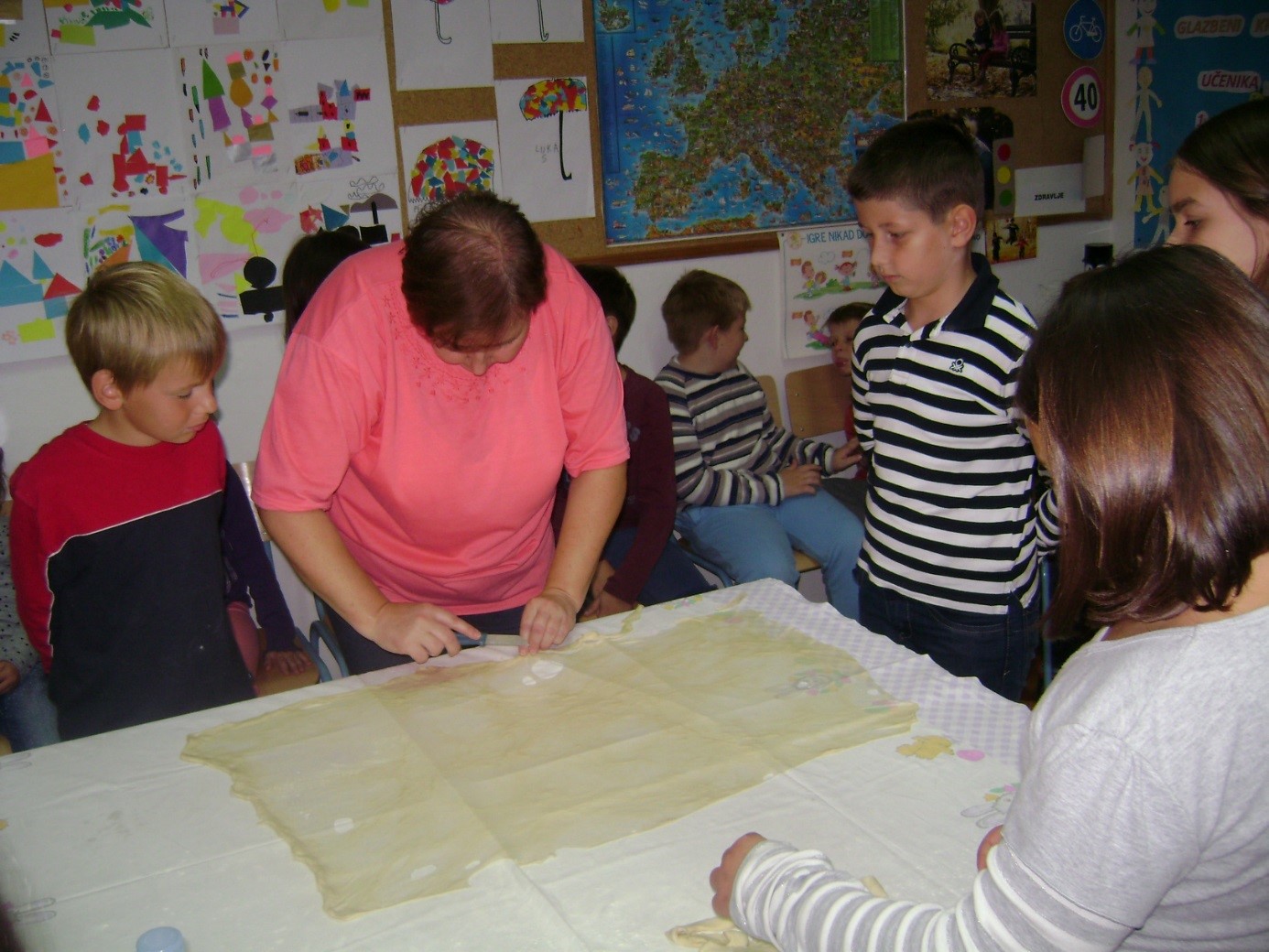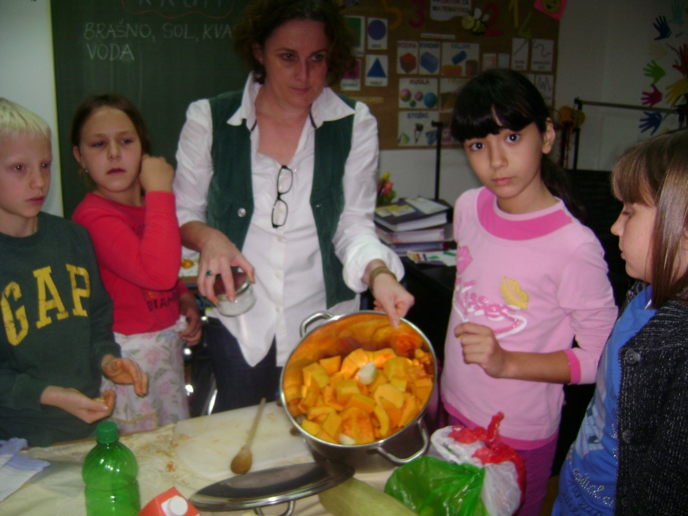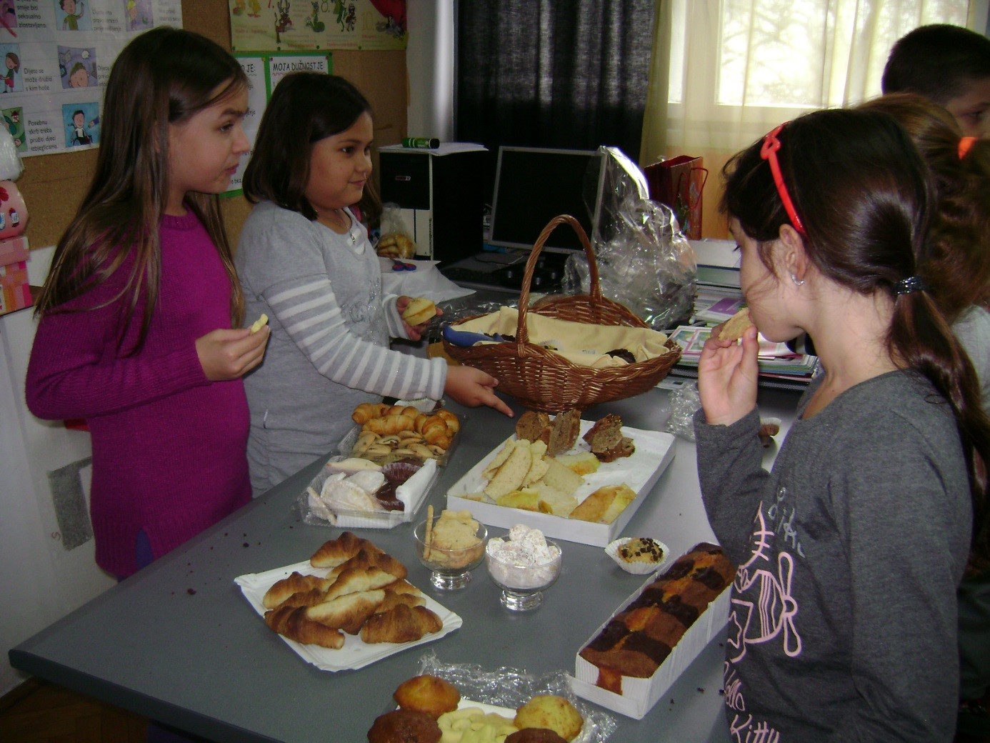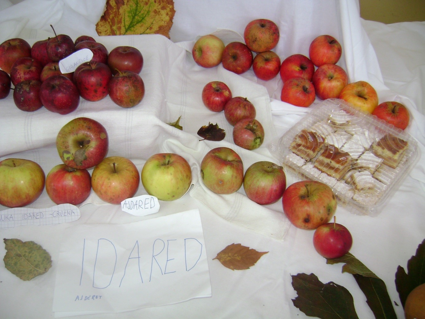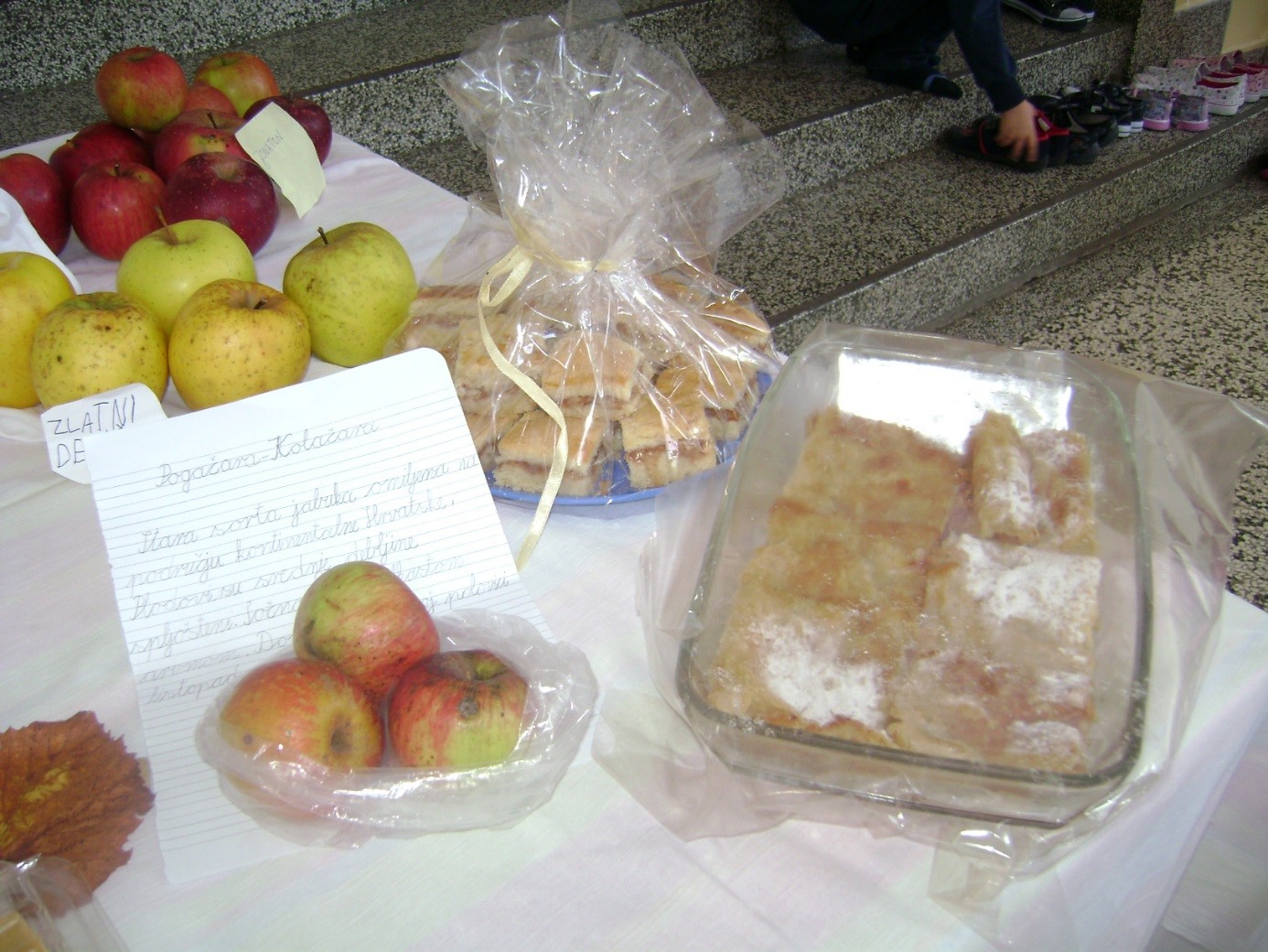 Nakon postavljanja izložbe i kratke priredbe u čast naše kraljice voća – jabuke, počastili smo se ukusnim kolačima, džemom, kompotom i sokom od jabuka..