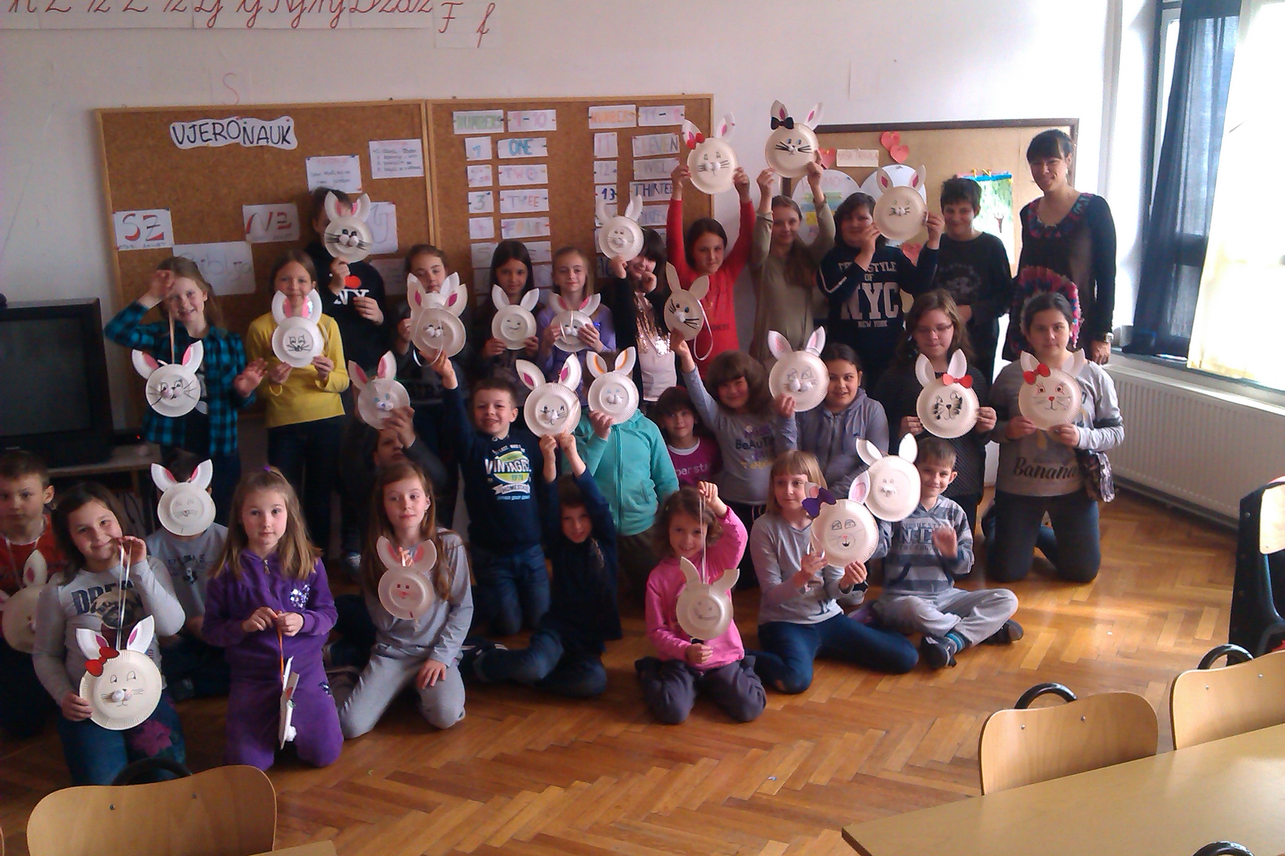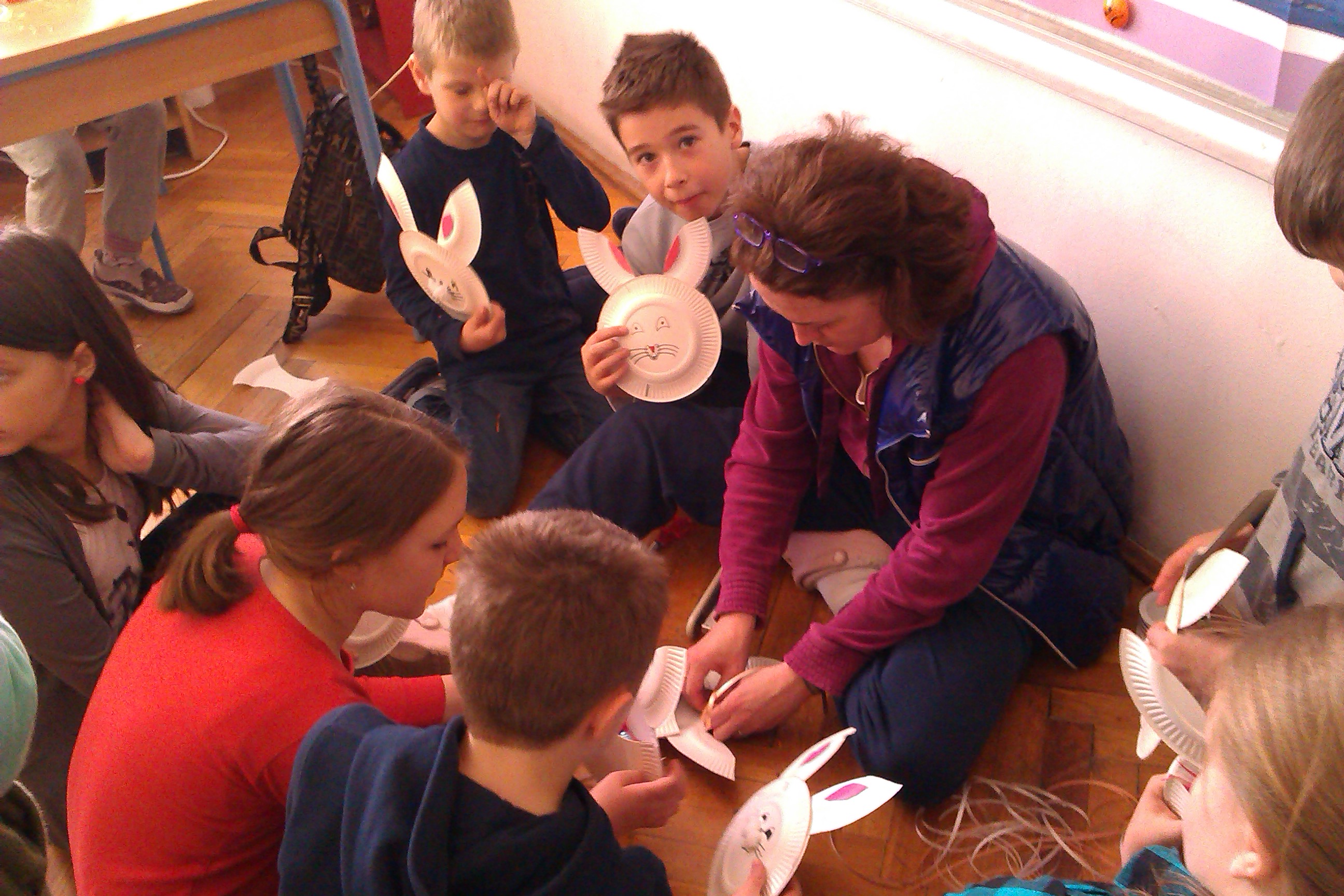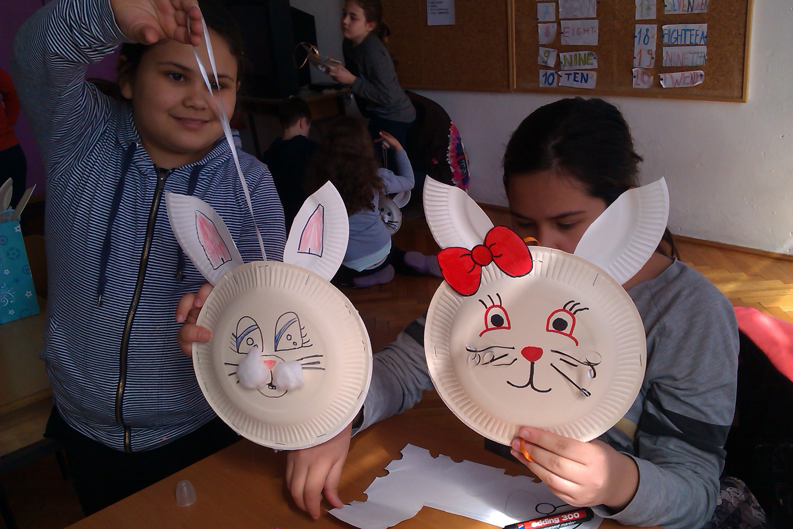 Za vrijeme proljetnih praznika družili smo se na radionici. S nama je bila učiteljica englskog jezika Maja Milek. Izrađivali smo uskrsne košarice pomoću papirnatih tanjura, kolaž papira, flomastera u boji.