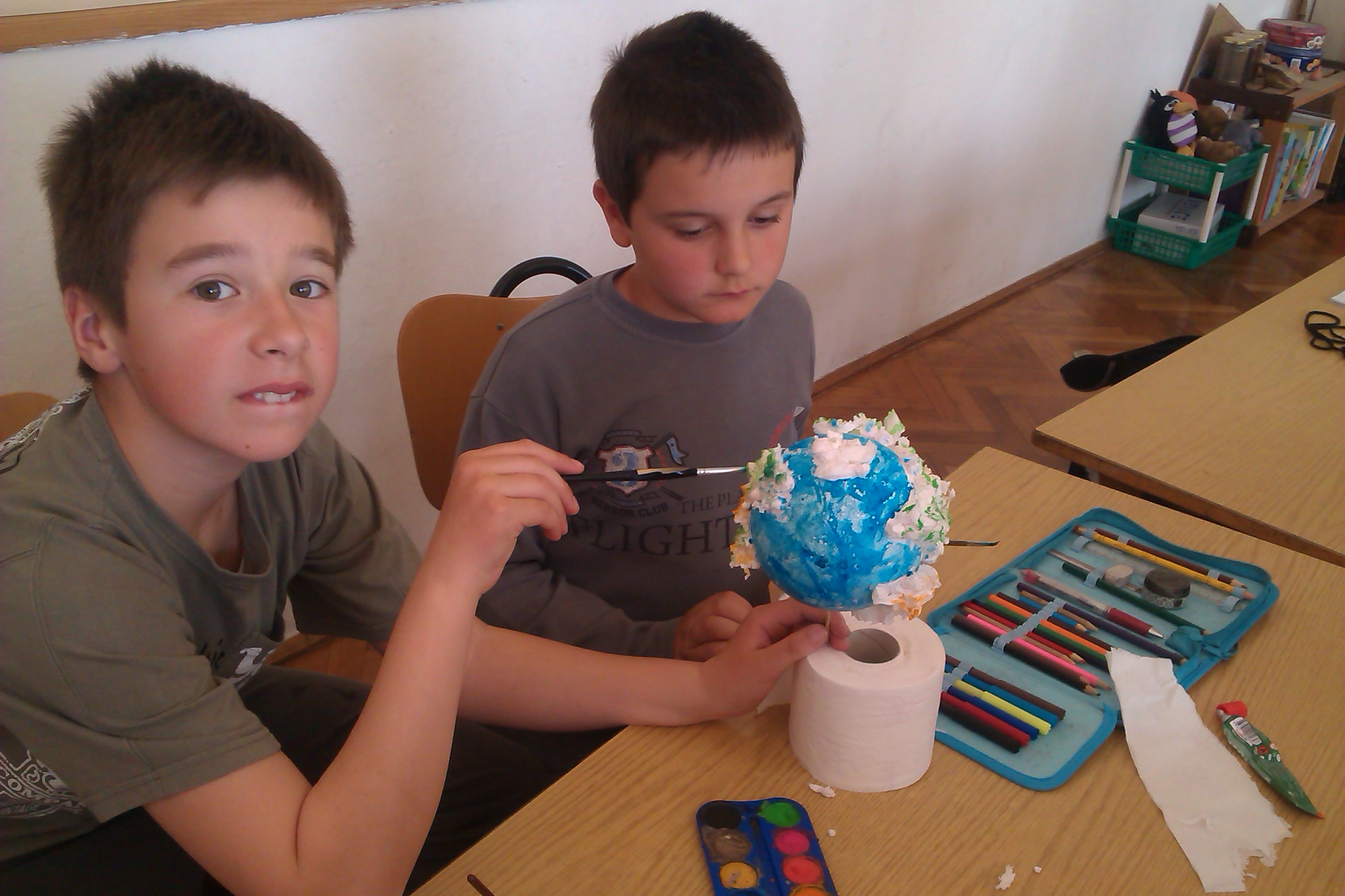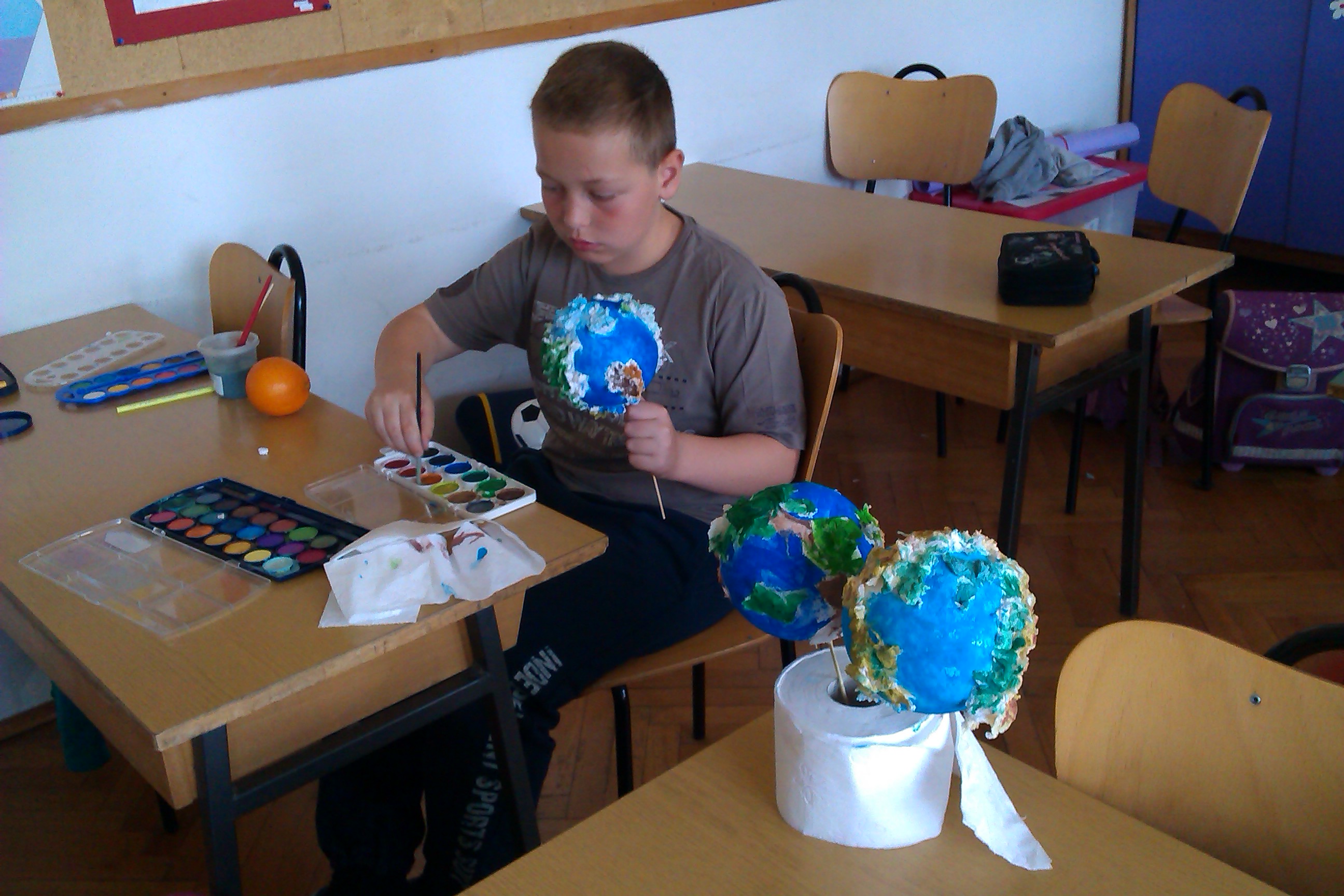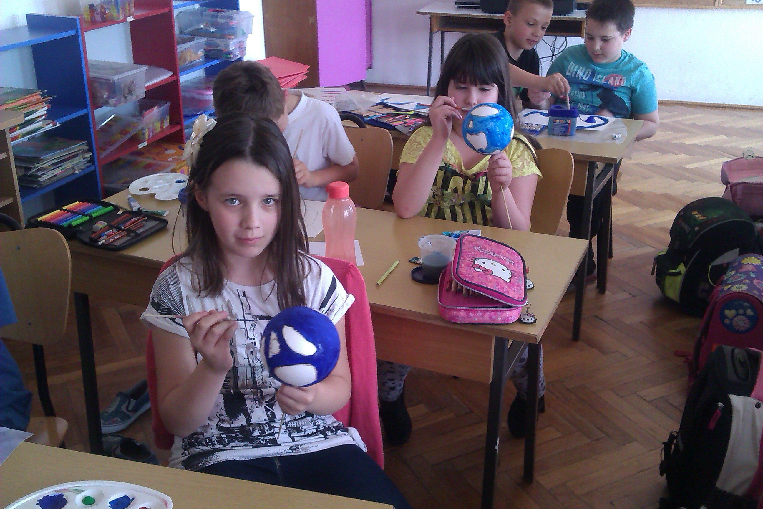 (Izrađivali smo eko – kugle Zemlje raznim likovnim tehnikama, te pisali eko – poruke.)