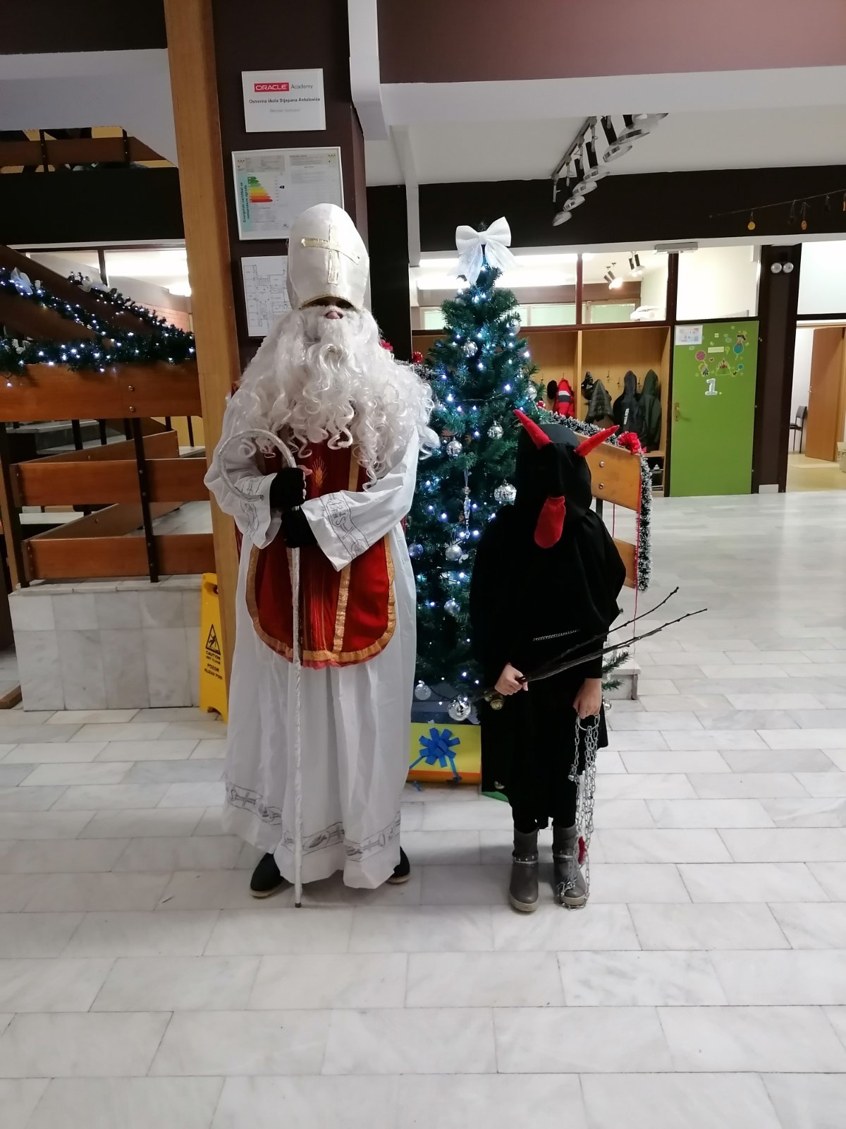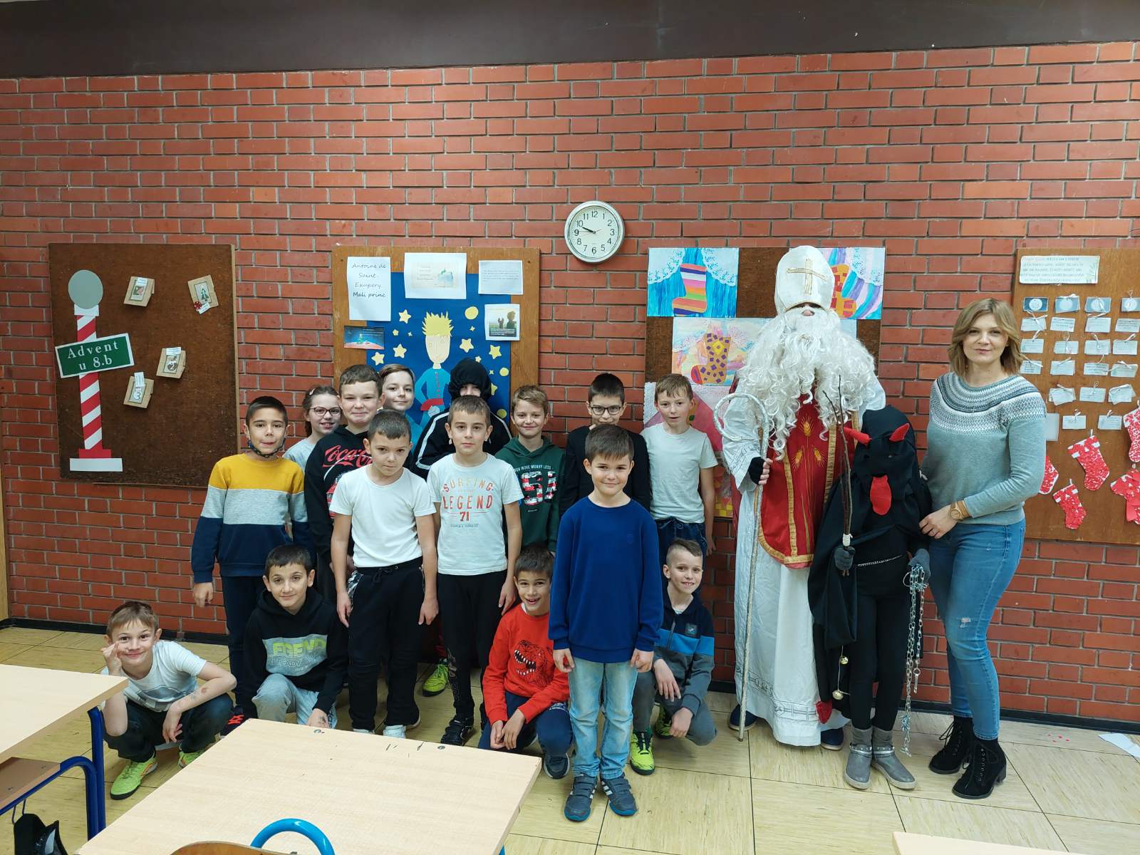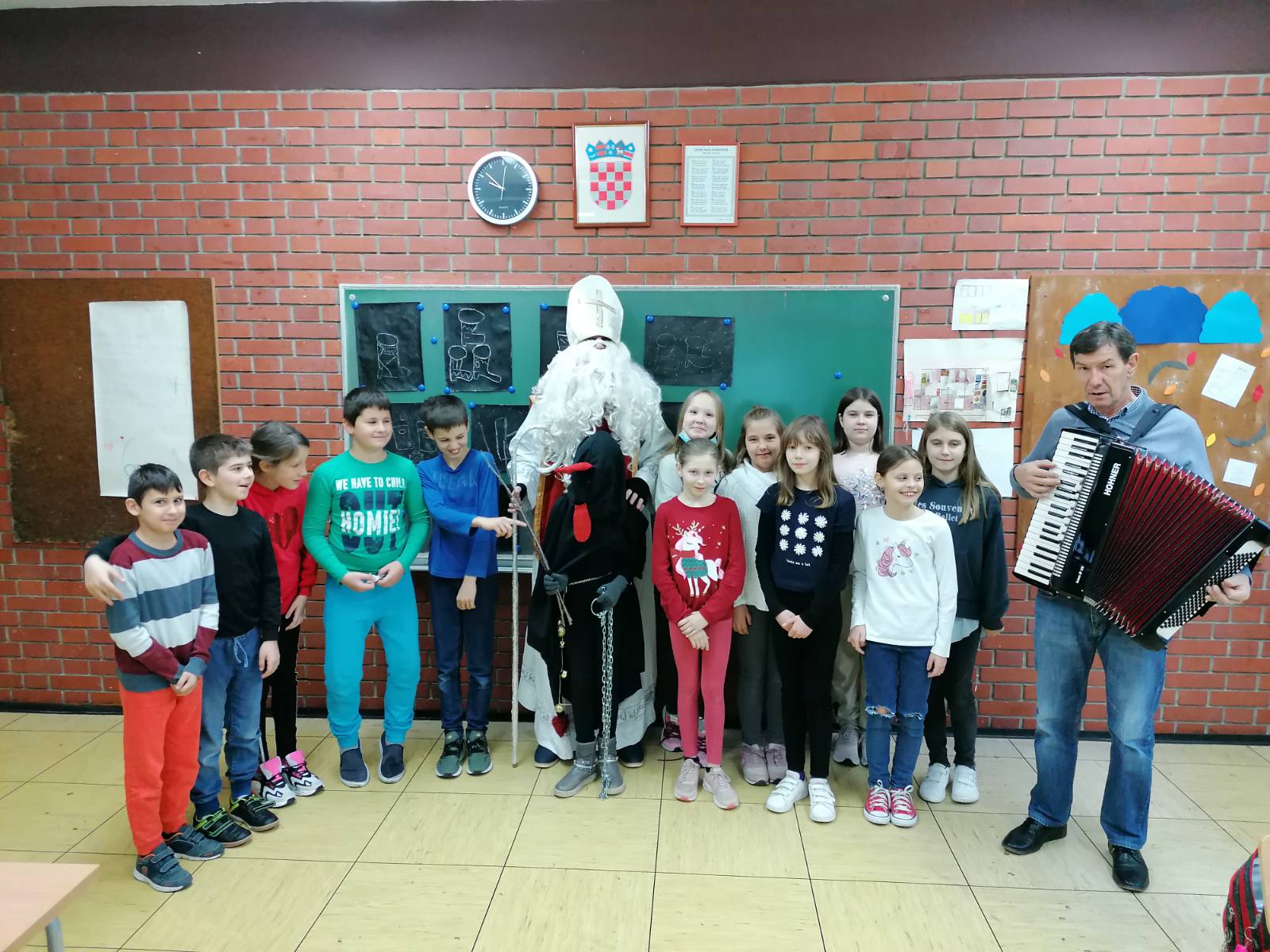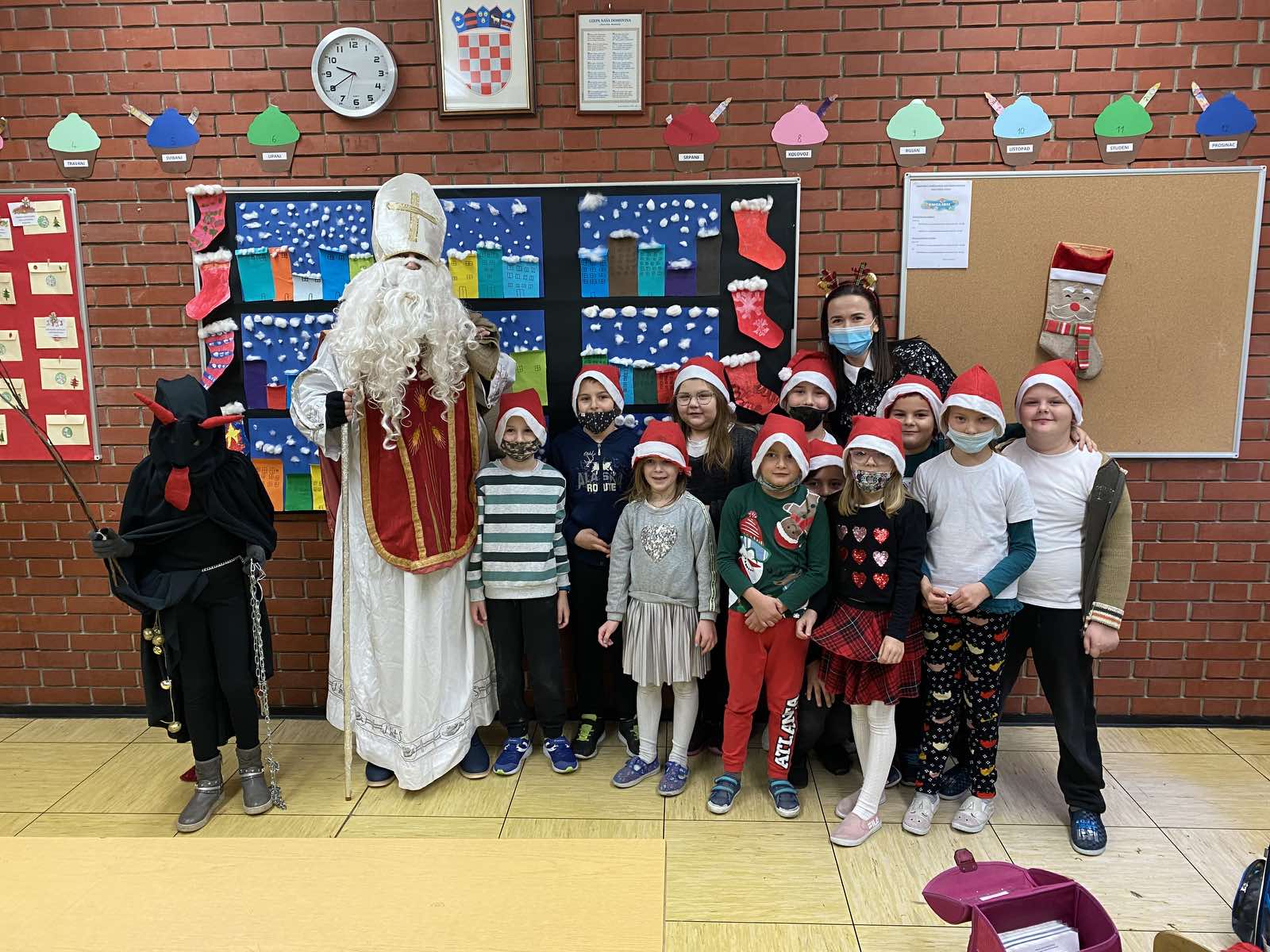 Učenici su ga dočekali s pjesmom i veseljem. U zanimljivom razgovoru s djecom, priupitao ih je koja obilježja sv. Nikola nosi na sebi. Djeca su vrlo rado odgovarala na njegova pitanja. U pratnji svetog Nikole, došao je i Krampus, međutim, nije našao puno posla, jer su naši učenici dobra i vrijedna djeca.