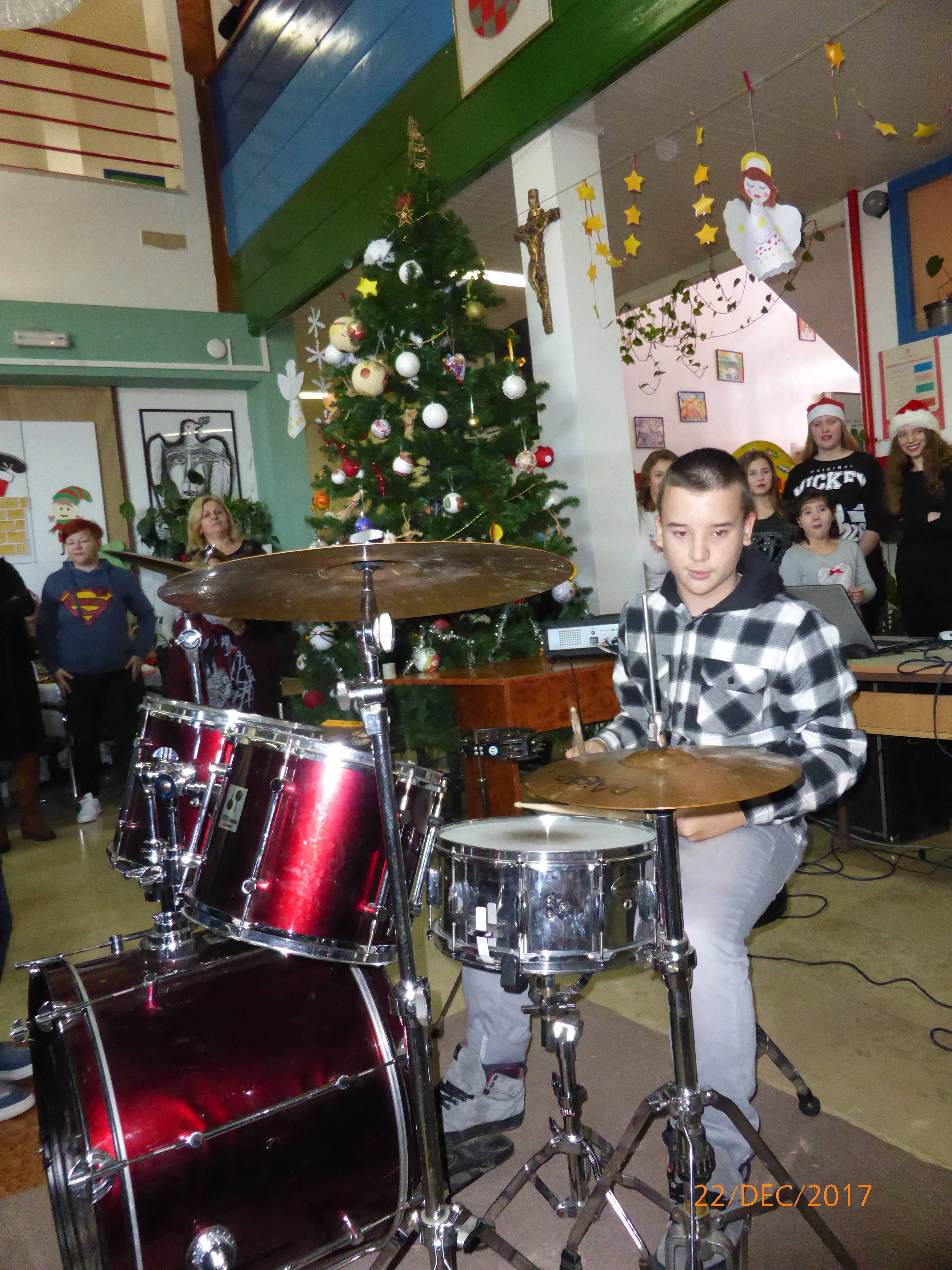 Svojim sviranjem, točnije bubnjanjem rasplesao je cijelu školu, učitelje, učenike, prisutne roditelje i hrpu Djeda Mrazova koji su stigli čak iz Laponije i donijeli slatkiše u Sela dobroj djeci.