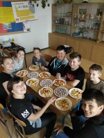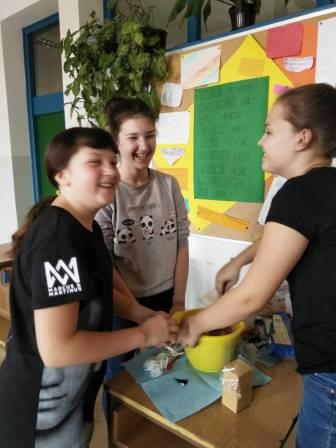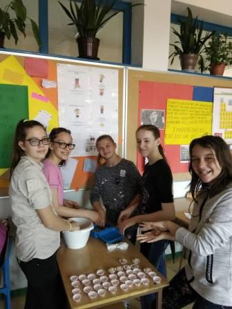 Učenici šestih razreda sa teachericom Ivanom Kljajić prošli tjedan su učili o zdravoj prehrani i hrani te odlučili pripremiti voćnu salatu i kolačiće bez pečenja. Učenici su donijeli sastojke, rasporedili poslove te sjeckali, gulili, miješali i na kraju slasno pojeli pripremljena jela. Usvojili su vokabular iz zadanog podrucja uz pomoć prakse. Sretna lica djece govore više od riječi. Dobar tek!