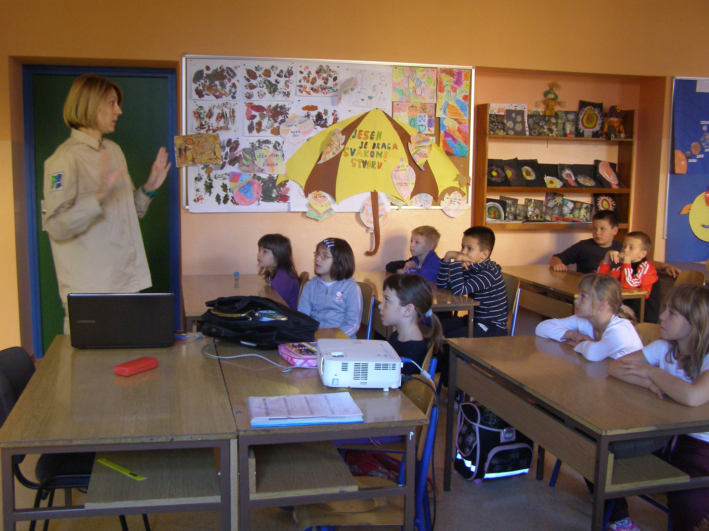Djelatnica Javne ustanove za upravljanje zaštićenim prirodnim vrijednostima SŽM, ing. Sandra Kalabić održala je predavanje za sve učenike nižih razrednih odjeljenja o vrijednostima šuma SMŽ i njihovom značaju za ekosustav te o šumskim staništima i zajednicama. Učenici su tako bili upoznati i sa zaštićenim životnjskim vrstama koje obitavaju na području naše županije kao i zaštićenim biljkama. Učenici su zaključili da je potrebno čuvati i brinuti se za šumu i njezine stanovnike.