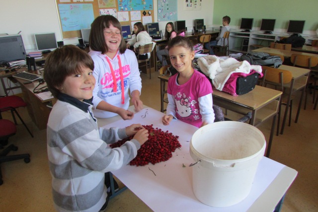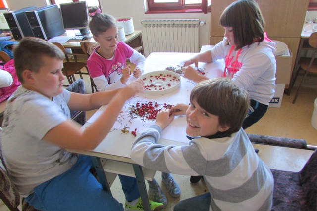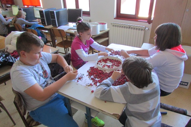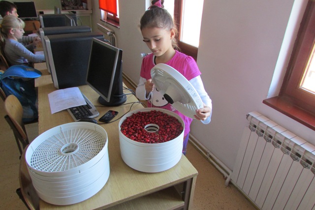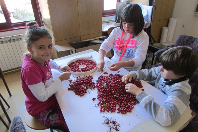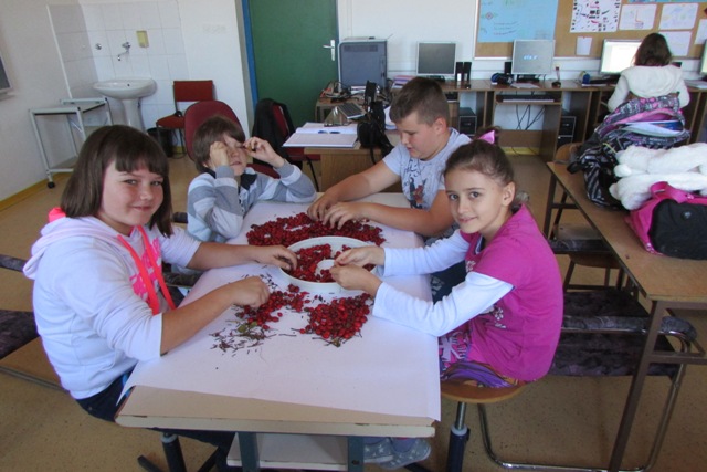 | 16. studenog 2015. godine zadrugari 5. b razreda Ceković Mihael, Folnožić Magdalena, Pavlić Anastacia i Zoretić Karlo preuzeli su odgovornost čišćenja šipka od stabljike i pripremu za sušenje ploda. Sve će ubrzo biti spremno za čaj - samo da malo zahladi! | |
