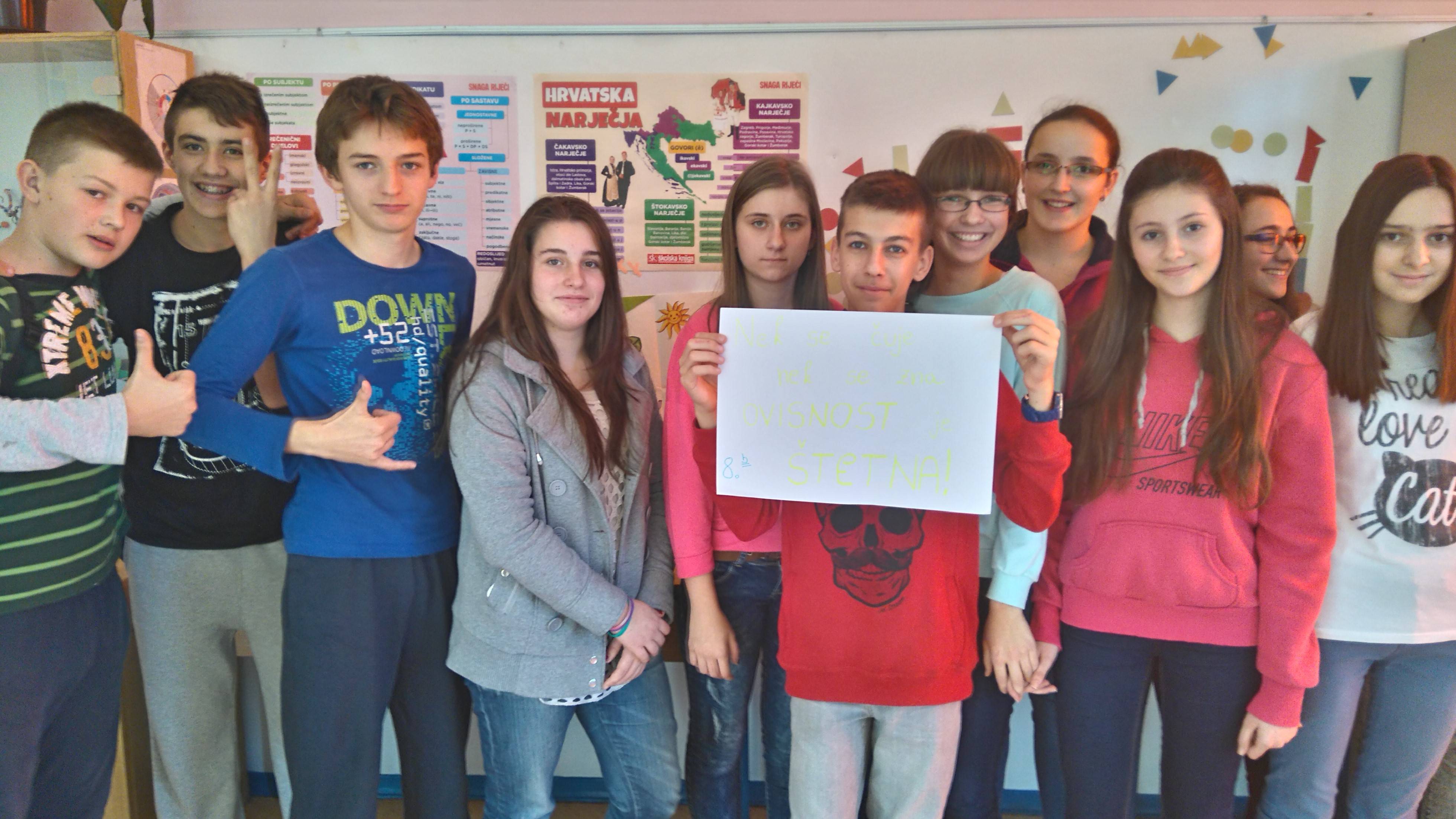 U okviru aktivnosti povodom obilježavanja Mjeseca prevencije ovisnosti osmaši su raspravljali o štetnosti različitih sredstava ovisnosti te, kroz dramatizaciju životnih situacija kroz koje se mladi s njima susreću, osvijestili važnost usvajanja zdravih životnih navika.