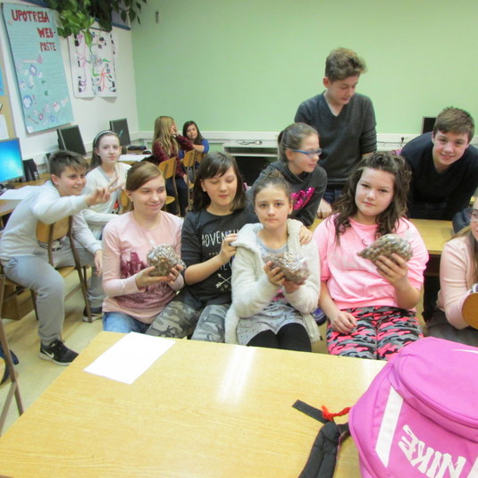 | Obzirom na hladno vrijeme i količinu lješnjaka koju su jesenas vrijedne ruke zadrugara ubrale uvidjeli smo da bi nekoliko puta tijekom mjeseca morali dolaziti u školu na čišćenje ovih plodova. Upravo zbog hladnog vremena podijelili smo lješnjake u vrećice i odredili parove koji će čistiti kod kuće. Sada se nadamo da će lješnjaci biti očišćeni i moći ćemo spremati kolače od njih. Vidimo se uskoro uz gibanicu od lješnjaka... |