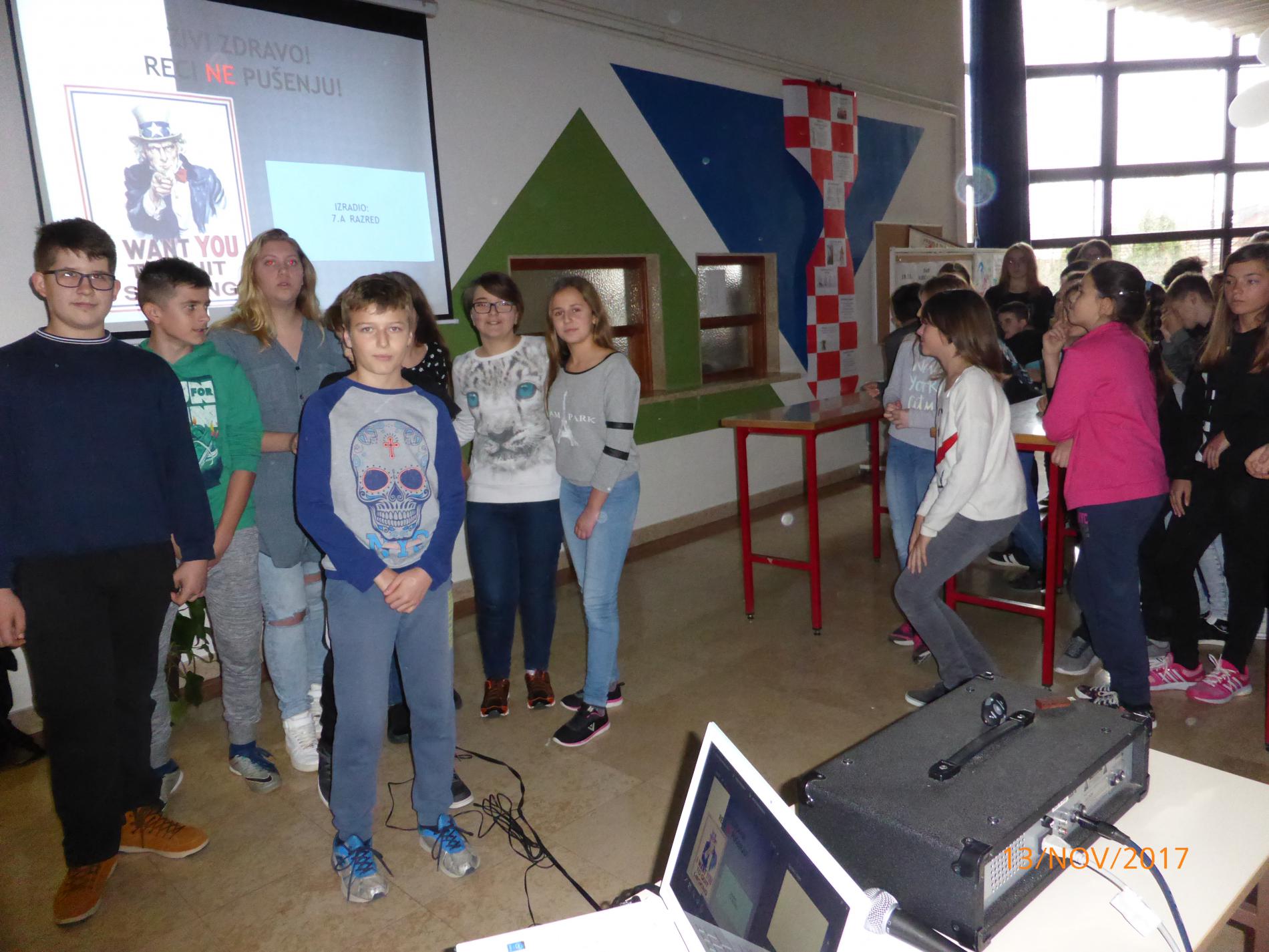 Učenici 7.a razrednog odjela naše škole uz stručnu podršku razrednice Ivane Kljajić održali su prezentaciju rada na projektu s temom " Živi zdravo i reci NE pušenju".