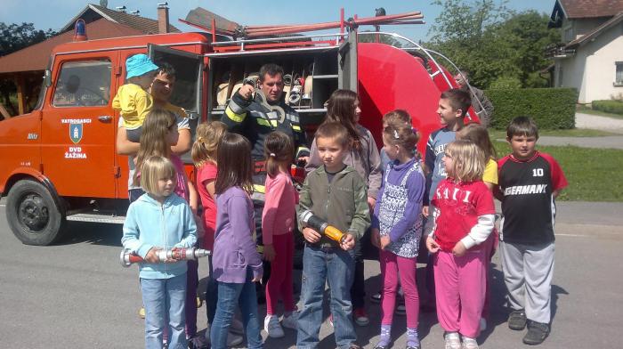 Članovi DVD-a Žažina demonstrirali su učenicima PŠ Žažina vatrogasnu vježbu u kojoj su sudjelovali i sami učenici. Učenici su imali priliku vidjeti kako izgleda vatrogasna oprema, te saznati koliko je bitno brzo intervenirati u kriznim situacijama gašenja požara.