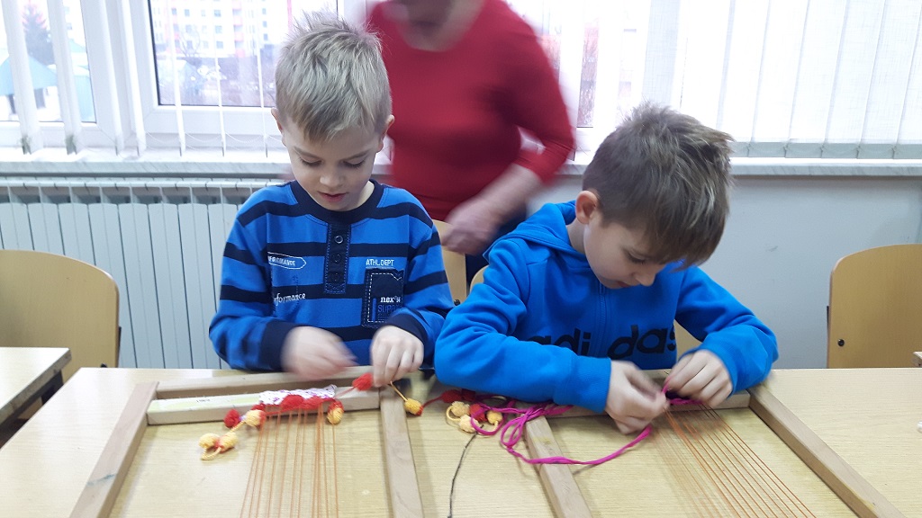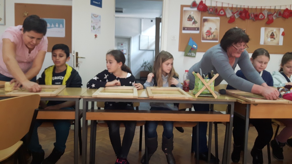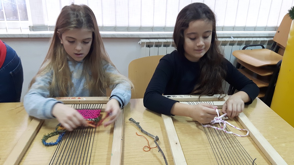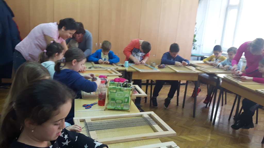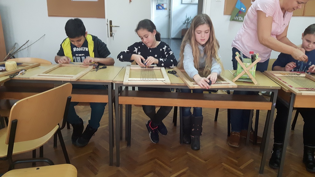 Učenici etno-grupe i dodatne nastave prirode i društva u prosincu su posjetili Narodno sveučilište Sesvete i tamo prisustvovali radionicama tkalačkog stana. Upoznali su pravi tkalački stan koji je još uvijek u funkciji i gospođa još uvijek na njemu tka. Nakon što su se i sami okušali u radu na pravom stanu, pristupili su izradi tapiserije na improviziranim stanovima. Svi, od onih najmanjih (prvašići) do onih malo većih (četvrtaši), su s veseljem i upornošću pristupili zadatku. Učiteljice (M. Krijan, N. Kovač, M. Delišimunović Čmigović i D. Dujić) koje su ih i vodile na radionice su bile jako sretne i zadovoljne zainteresiranošću učenika, a i konačnim uradcima. Evo kako je sve to teklo: