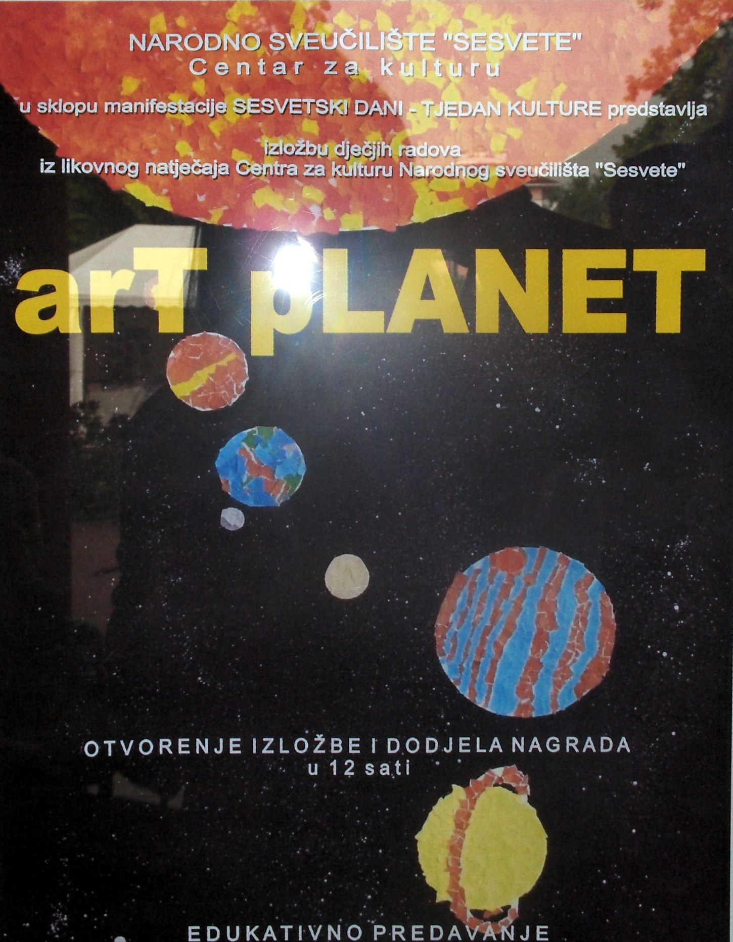 U sklopu manifestacije Sesvetskih dana-tjedna kulture, Narodno sveučilište Sesvete je predstavilo izložbu dječjih radova sesvetskih osnovnih škola pod nazivom "Art planet". Osim sesvetskih škola, učenika 1.a i 1.c razreda OŠ Sesvetska Sela, na natječaju su sudjelovale i škole iz Rijeke i Iloka. Treće nagradu za likovni rad dobili su učenici iz Iloka, druga nagrada pripala je učenicima OŠ Luka, a prvu nagradu osvojili su učenici 1.c razreda OŠ Sesvetska Sela.
