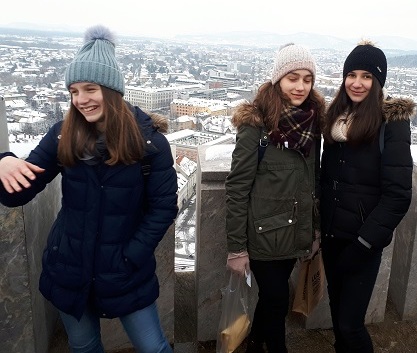Slijedio je posjet Ljubljanskom gradu - tvrđavi na brijegu usred Ljubljane popeli smo se uspinjačom. Naš voditelj nas je proveo kroz tvrđavu. Hodali smo drevnim pločnicima, susreli se s vitezovima, provlačili uskim hodnicima i uspinjali se tisućama kružnih stepenica do vrha kule s koje se pružao nevjerojatan pogled na prekrasan krajolik. Bilo je zaista zabavno, dinamično i edukativno. Također smo ovjekovječili trenutke fotografijom.