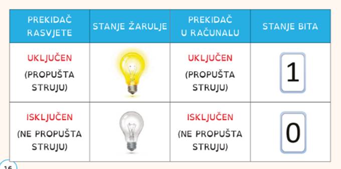 U svakodnevnom životu komuniciramo govorom i pismom. Računala komuniciraju na drugi način. Rad računala temelji se na binarnom brojevnom sustavu, a to znači da računala razumiju samo dvije znamenke 1 i 0.