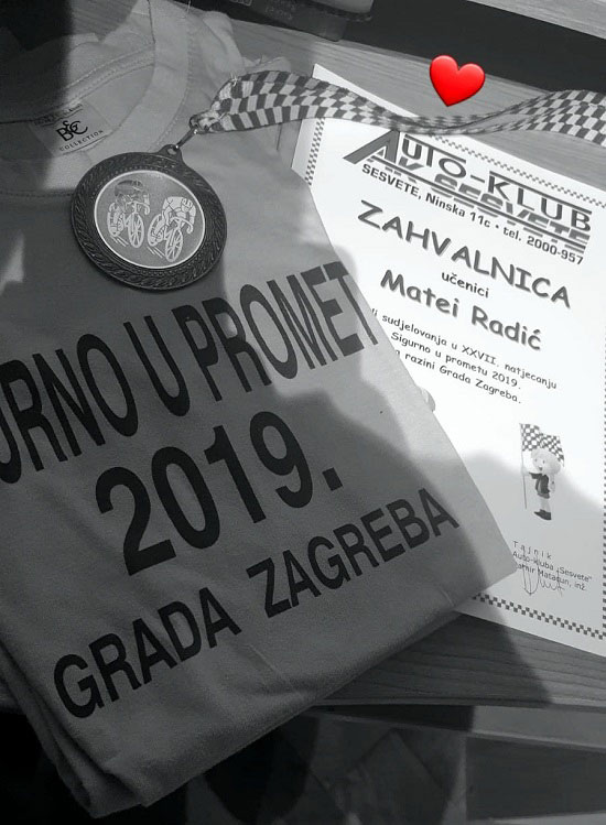 Ekipa od četvero učenika naše škole iz 5. a Matea Radić i Karla Golubić i 5. B Jona Pesserl i Emanuel osvojila je treće mjesto na natjecanju škola Gradske četvrti Sesvete Sigurno u prometu u konkurenciji od 12 ekipa.
