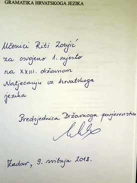 Rita Zonjić, učenica 8. razreda naše škole, i ove je godine osvojila Oskar znanja kao državna prvakinja u poznavanju hrvatskoga jezika 2018.