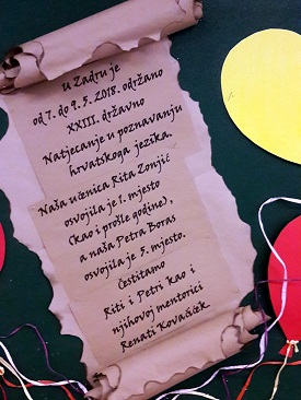 XXIII. državno Natjecanje iz hrvatskoga jezika održano je od 7. do 9. svibnja 2018. u OŠ Šimuna Kožičića Benje, u Zadru. U kategoriji 8. razreda našu su školu predstavljale dvije učenice. Rita Zonjić osvojila je 1. mjesto, a Petra Boras sjajno 5.!
