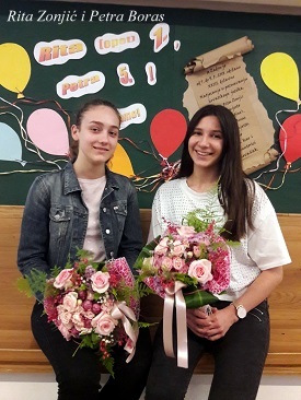 Na priloženim fotografijama možete vidjeti ugođaj iz Zadra te proslavu u našoj školi. Čestitamo Riti i Petri te im želimo još puno sličnih uspjeha.