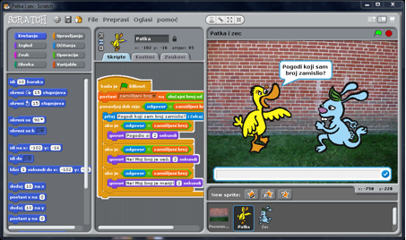 Programiranje u Scratchu potpuno je vizualno. Djeca pišu programe tako što slažu gotove blokove u veće konstrukcije. Tu su svi osnovni elementi koji su od prije poznati iz jezika poput BASIC-a: ako–onda grananja, petlje, operatori, varijable – samo što su u ovom slučaju programi pregledniji, na hrvatskom, i ne zahtijevaju učenje posebne sintakse.