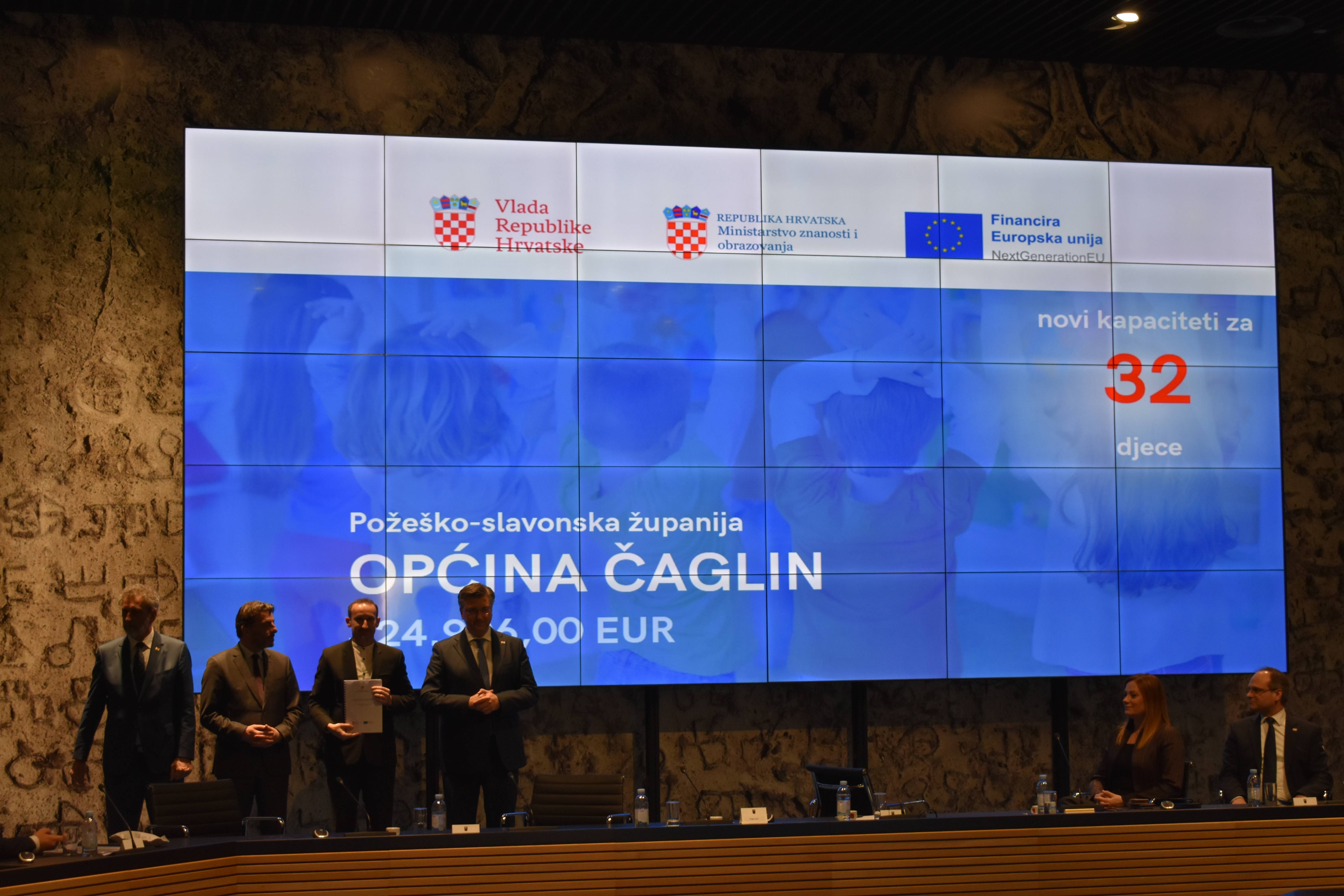 13. ožujka 2024. godine općinski načelnik Općine Čaglin Dalibor Bardač je, u Zagrebu, potpisao Ugovor o dodjeli bespovratnih sredstava za projekte koji se financiraju iz mehanizma za oporavak i otpornost kojim će se financirati dogradnja dječjeg vrtića u Čaglinu u iznosu od 324.906,00 €. Projekt financira Europska unija-NextGenerationEU.