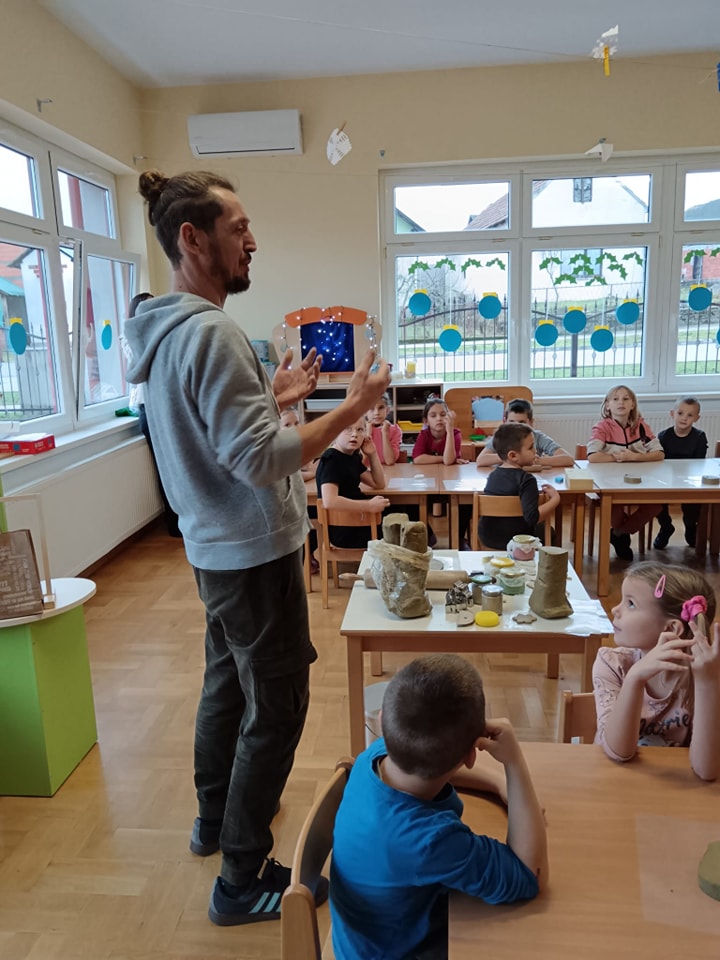 Dana 9. prosinca u DV - u Čaglin smo ugostili gospodina Dario Šipoša iz Shiposh ceramics iz Požege te treći razred OŠ Stjepana Radića Čaglin s učiteljicom Ivanom Mlakar. Suradnja je bila prekrasna, a sobom nosimo nova znanja o ovom prekrasnom prirodnom resursu. Kako se izrađuju posude, te kakve sve one mogu biti, Dario nam je objasnio. Radionica je trajala gotovo dva sunčana sata i nikom nije bilo dosadno.