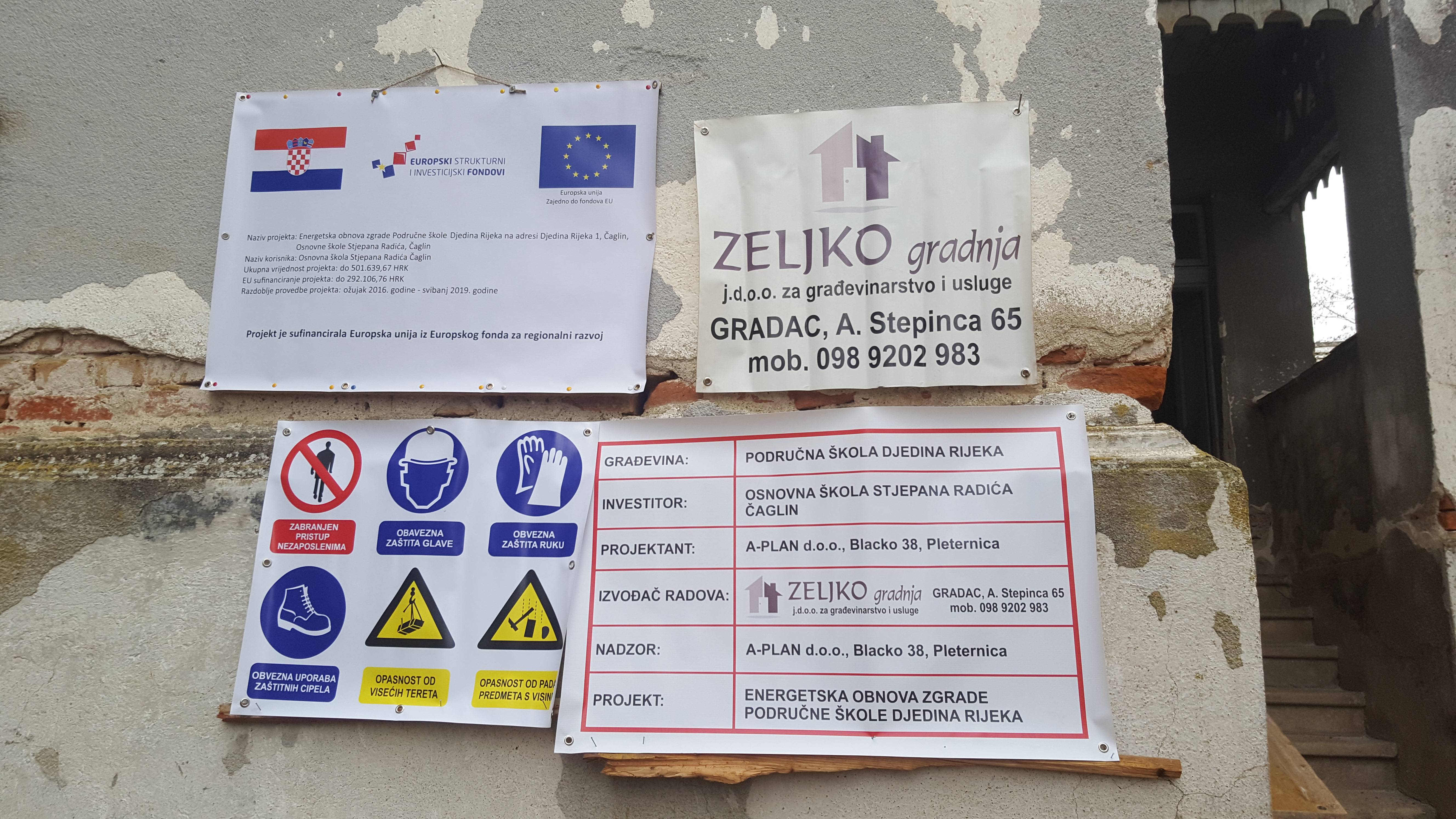 Dana 11. 12. 2017. godine potpisan je Ugovor o dodjeli bespovratnih sredstava za projekt Energetska obnova zgrade Područne škole Djedina Rijeka na adresi Djedina Rijeka 1, Čaglin, Osnovne škole Stjepana Radića Čaglin, Referentni broj Ugovora KK.04.2.1.03.0041.