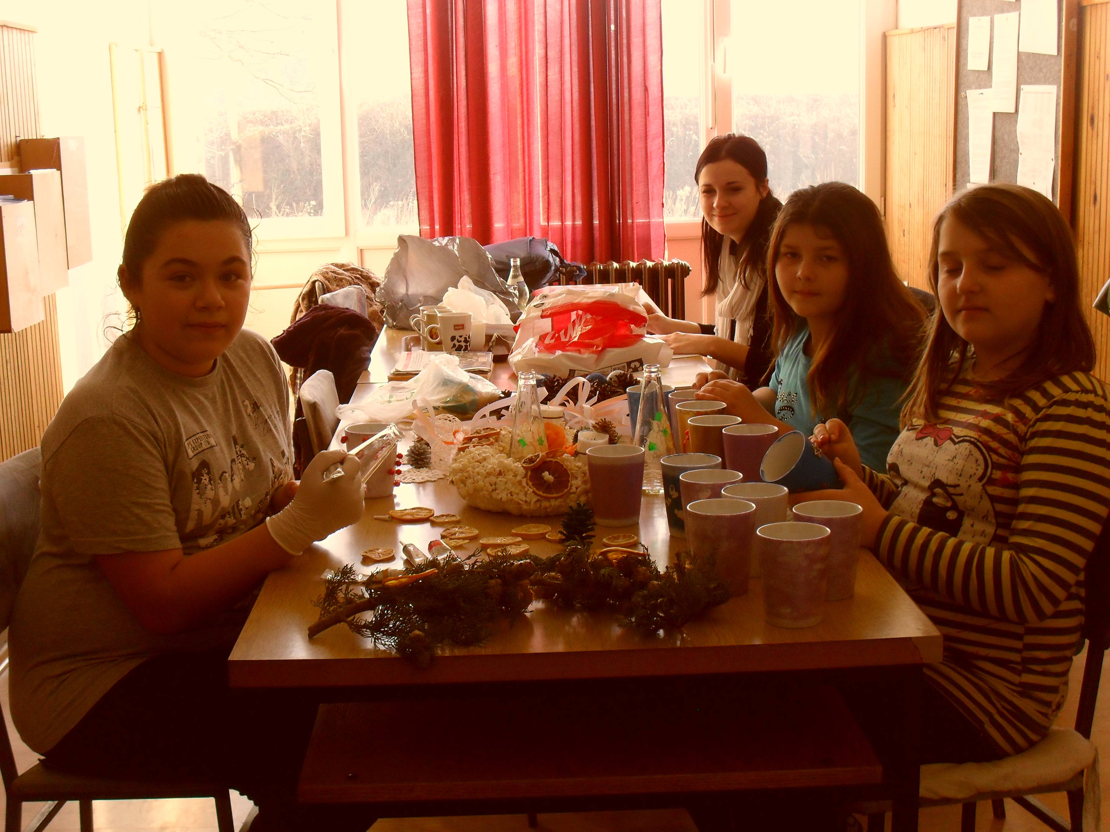 Voditeljica Učeničke zadruge učiteljica Mirta Kolar je predložila da uključimo i mame naših učenika, za koje znamo da su vješte u ručnom radu, da nam se pridruže u izradi heklanih božićnih kugli i pahuljica. S oduševljenjem su pristale i blagdanska jelka je ove godine, po prvi put, zasjala u školskom hodniku, ukrašena kuglicama i pahuljicama izrađenim od bijelog konca. Osim njih i ostali roditelji su se potrudili i donosili materijale za rad te na taj način pomogli navedene aktivnosti.