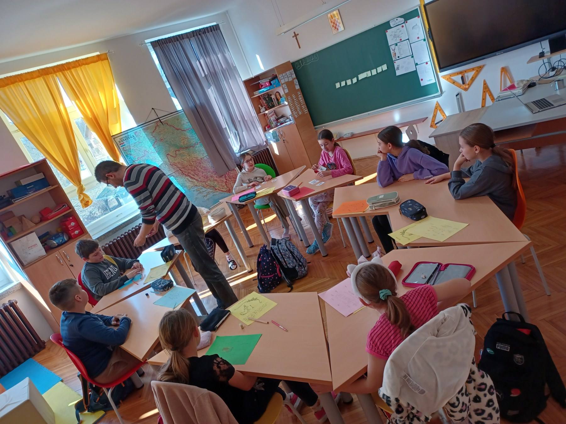 Uvijek se veselimo kada nam na sat A2 hrvatskoga jezika dolazi naš stručni suradnik, knjižničar Emir Džaferović. S obzirom da on izvrsno pliva u vodama medijske kulture i ovaj put smo ga rezervirali za to područje. S nestrpljenjem smo iščekivali film kojim će nas ovaj put iznenaditi i motivirati za rad. Tako smo danas zajedno "zavrtjeli svoj film" Mjesta ima na metli svima. Zamišljali smo, opisivali i nacrtali svoju vješticu . Pogledali smo animirani crtani film te saznali kakva je vještica u filmu. Uživjeli smo se u bajku i blok sat hrvatskoga jezika izmjenom zanimljivih aktivnosti (izražavanje doživljaja, filmska bajka, razvoj likova - zajedništvo, filmska priča - pripovjedna ruka, zajedničko pripovijedanje - naša bajka) prošao je bajkovito brzo. Poruke filma vodit će nas dalje kroz život. Budimo svi prijatelji! Prihvatimo i one koje su drugačiji od nas. Slogom i zajedništvom se puno toga može postići! Zajedno smo jači! Zahvaljujemo se knjižničaru i veselimo se budućoj suradnji.